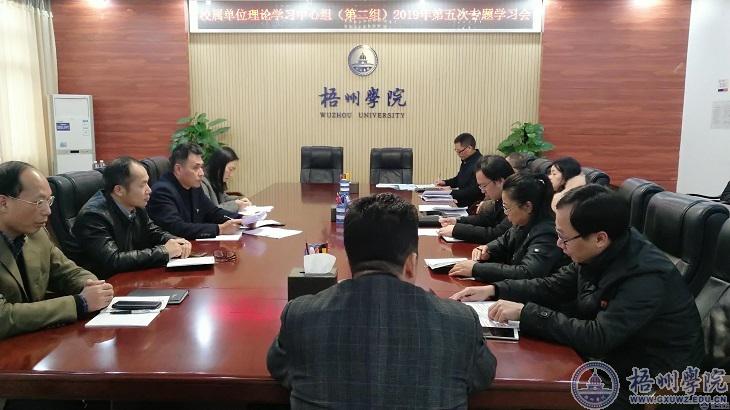 12月23日下午,校属单位理论学习中心组第二组在明理楼八楼第二会议室召开2019年第五次专题集中学习会,会议由组长黄健武同志主持。