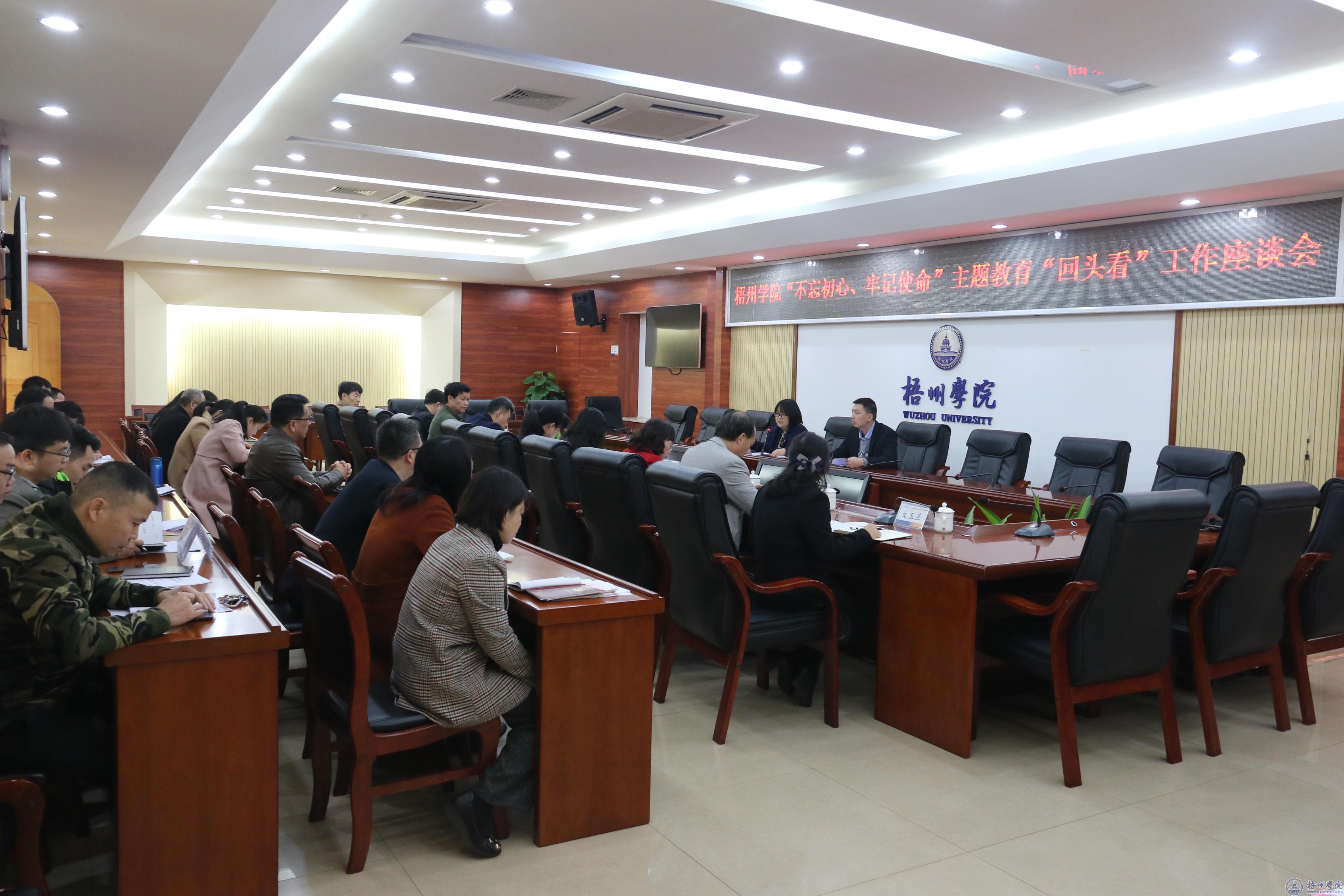 12月26日上午,学校在明理楼八楼第一会议室召开“不忘初心、牢记使命”主题教育“回头看”工作座谈会。自治区党委“不忘初心、牢记使命”第九巡回指导组成员蒋霞、刘旭杰出席座谈会。会议由指导组成员蒋霞主持,学校党委副书记曹迎,学校主题教育工作办公室成员,师生代表参加会议。