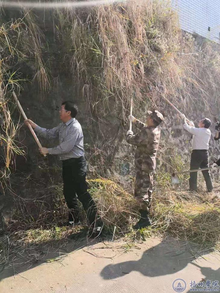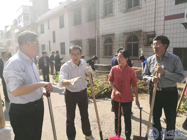 1月9日,学校党委书记唐平秋与市政府领导班子成员及秘书长,梧州军分区政委,万秀区党员干部一起到万秀区开展的“干干净净迎新春”大扫除活动。 在万秀区西环路中段金盏里环山路段,唐平秋与在场的党员干部,一起用铁铲、锄头、扫把等工具仔细清理绿化带、小区内粘贴的小广告和地面垃圾等,进行了全面清理,用实际行动推动城区环境改善,以干净、整洁的崭新面貌喜迎新春佳节年。 据悉,此次梧州市将开展为期一个月的“干干净净迎新春”环境卫生大扫除活动。 [文: 韦雅倩]
