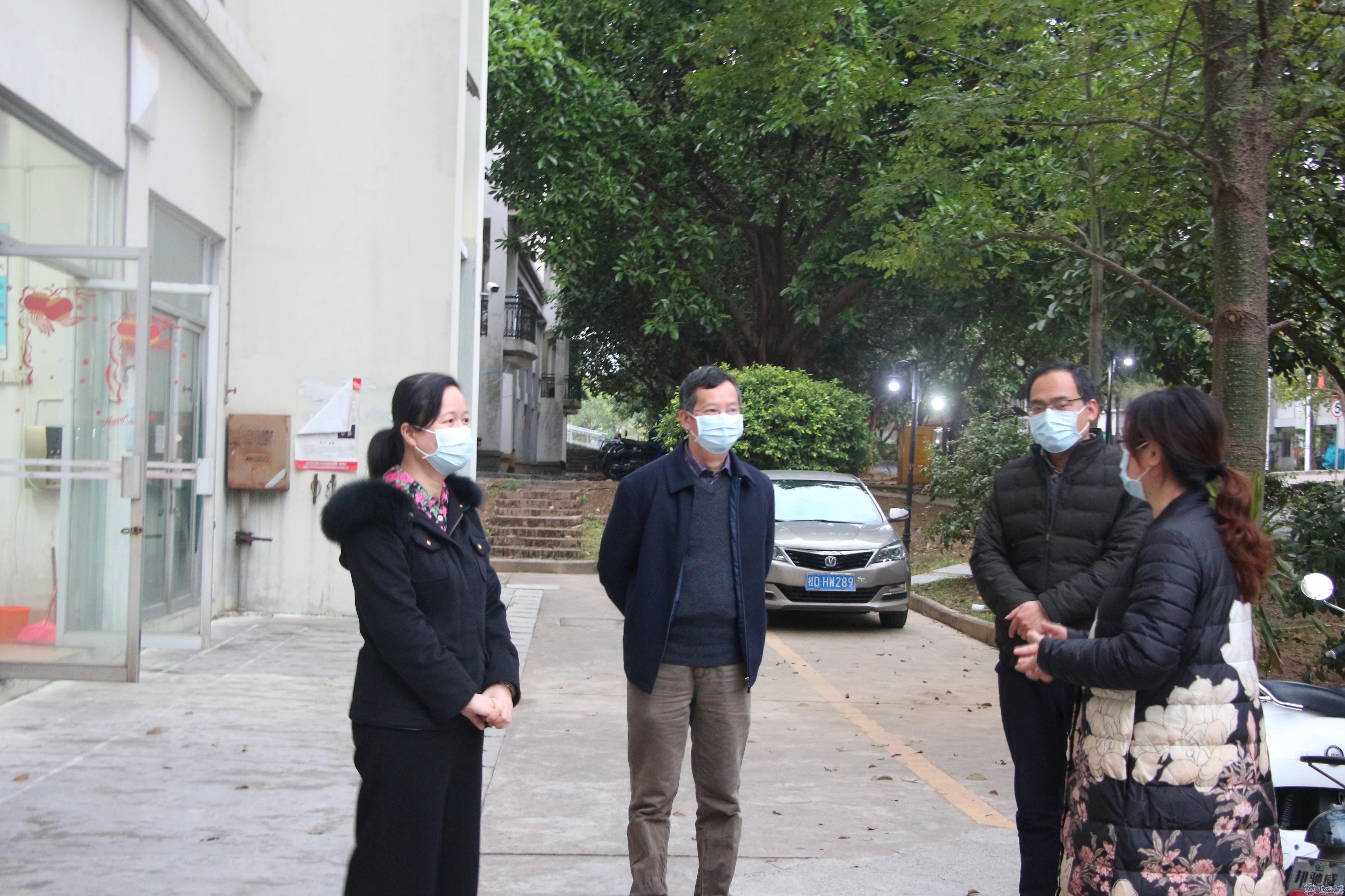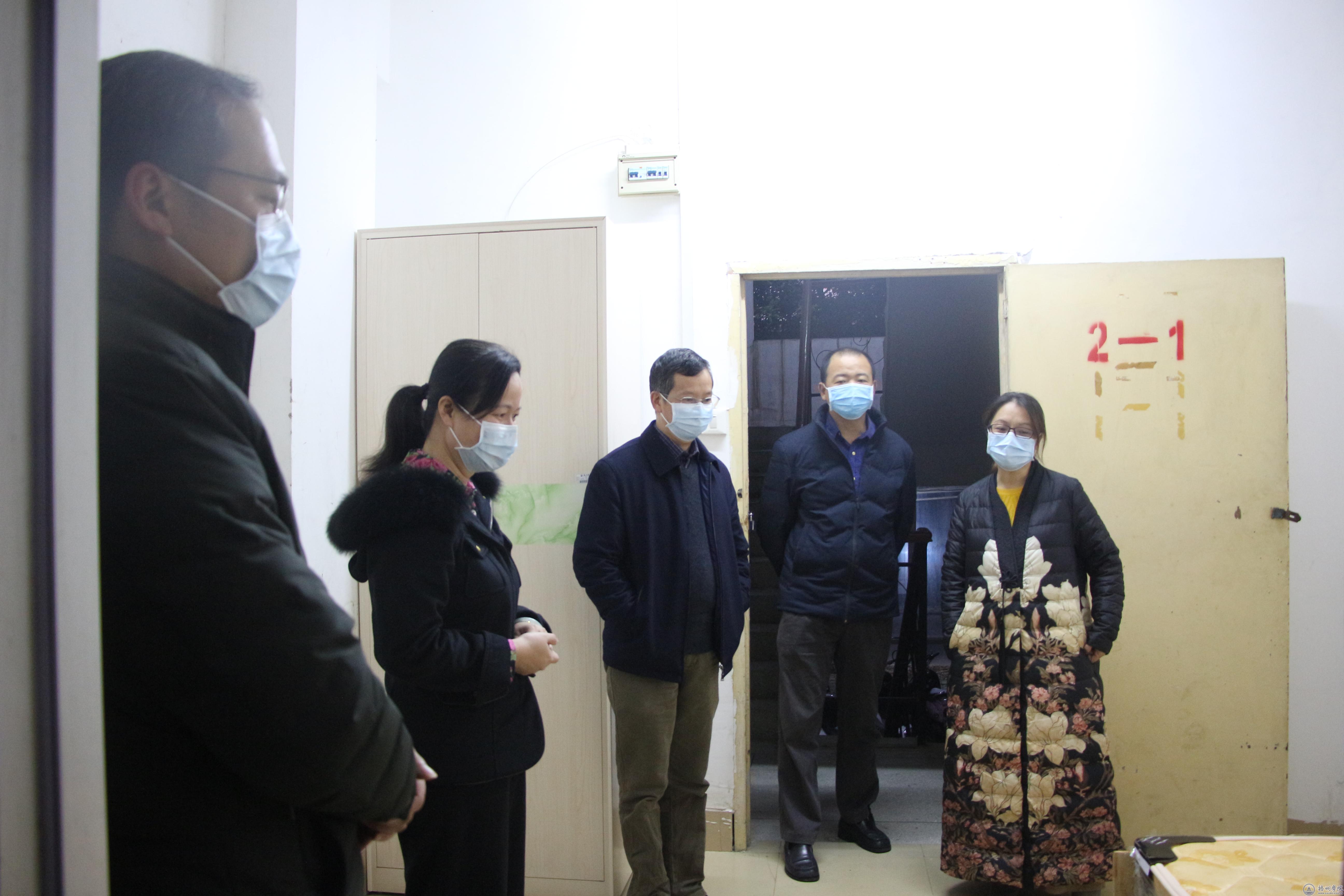 曹迎副书记(左二)、麻新纯副校长(左三)检查学生公寓隔离房间