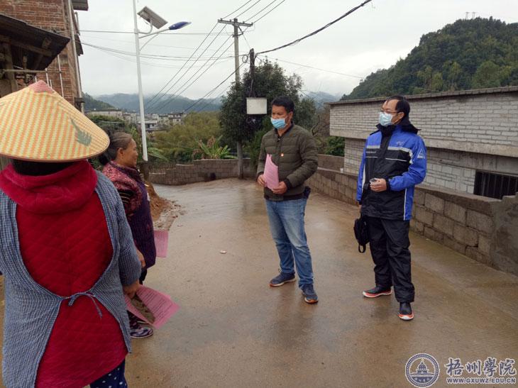 根据新型冠状病毒感染的特性,针对2020年1月10日以来进出广西的本村村民进行逐一排查并登记在册,对重点监测人员实行14天的体温监测;劝说外出返乡人员不随意串门,坚持“横向到边,纵向到底”的工作原则,确保“不漏一户,不漏一人”做到情况清底数明;对防疫工作实行每日零报告,将排查出来的数据和结果报送到新圩镇政府。