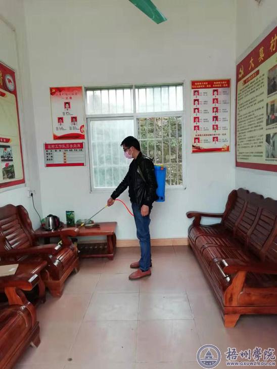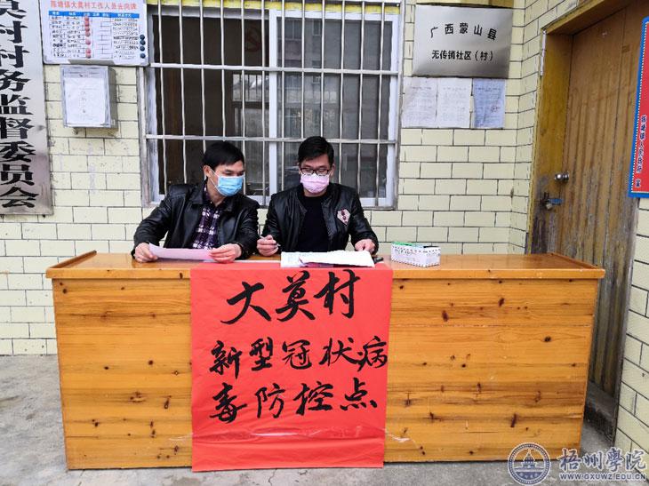 在大莫村担任“第一书记”的谢谊兴,在疫情发生以后,坚守在农村防疫一线岗位。他所在的大莫村是蒙山、昭平、藤县3县交界点。离镇区约8公里,离县城约50公里,共706户2457人。