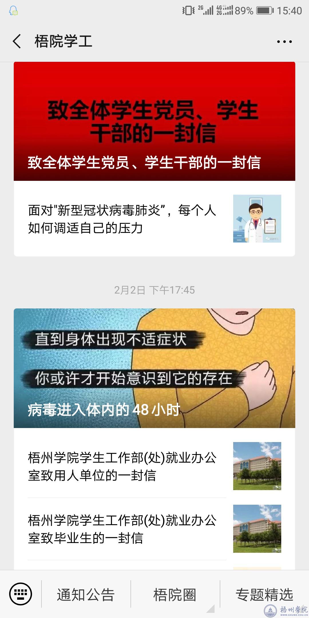 辅导员、班主任扮演好抗疫路上引路人角色,不间断推送学生学习防护知识、疫情期间相关法律知识、辟谣信息、阅读书目给学生,鼓励学生勇敢面对困难,勇挑使命。为了及时缓解疫情期间学生的情绪,学校通过微信公众号发布各种心理健康知识、推送各种疫情期间开展心理防疫的技能,全校对疫区的124名学生每天都能保持QQ微信沟通互动,缓解他们思想心理上的压力。有的辅导员老师为了满足学生就业指导需要,还及时开通网络讲授就业技能指导服务。