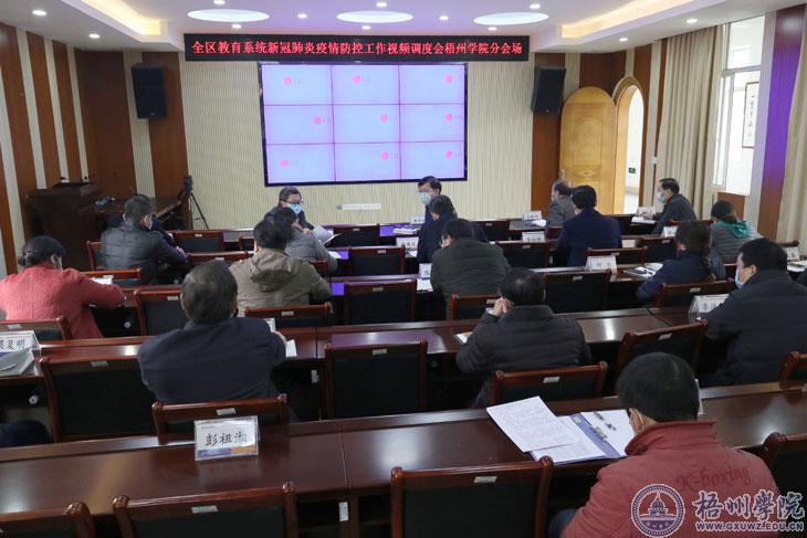 2月19日上午,学校在组织参加全区教育系统新冠肺炎疫情防控工作视频调度会后,学校新型冠状病毒感染的肺炎疫情防控工作领导小组召开会议,结合学校实际情况,贯彻落实全区教育系统疫情防控工作调度会有关精神和要求。学校领导唐平秋、杨奔、玉振明、邱房贵、梁业华,学校疫情防控工作领导小组成员,领导小组指挥部下属各工作组组长参加会议。