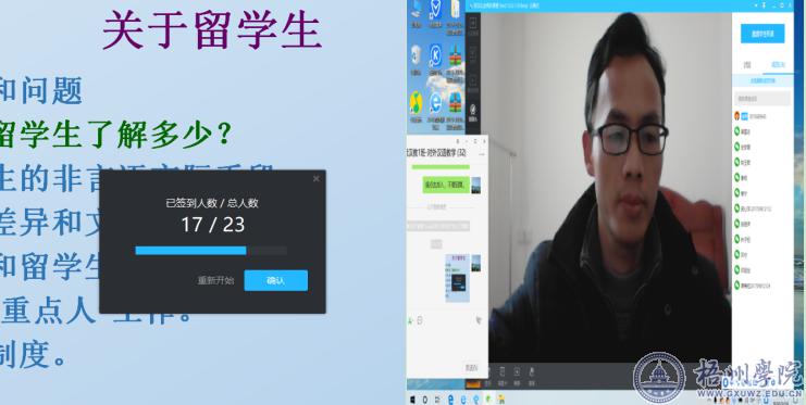 文学与传媒学院张汉礼老师给留学生线上教学