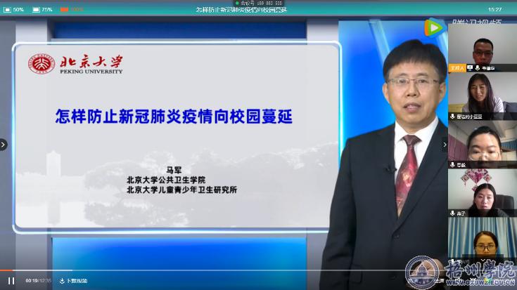 为了做好疫情防控减少人员接触同时又开展好本次网络主题党日活动,教师第一党支部以腾讯会议为载体开展了主题活动。会议中,教师第一党支部支部李桂茹书记从疫情防控的成效出发分享了“党的领导是战胜疫情的根本保证”,认为这次疫情发生后,党中央高度重视,第一时间制定疫情防控方针政策,在有力有序推进疫情防控,坚决遏制疫情扩散蔓延上取得了很好的成效,最后结合实际工作对同志们提出了疫情防控工作要求。随后大家一同在线观看、学习了北京大学公共卫生学院马军教授开讲的公开课——《怎样防止新冠肺炎疫情向校园蔓延》。观看视频后,同志们就“停课不停学”,疫情防控“十严格”的主题从不同角度发表自己的感言,共同期待疫情早日过去,早日返回我们美丽的校园。