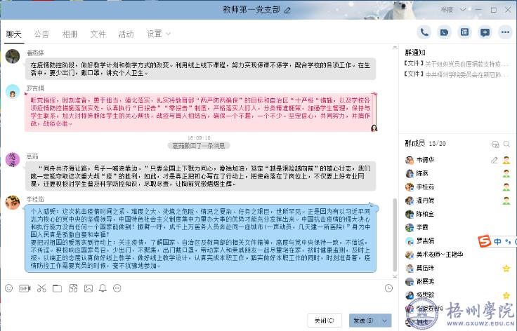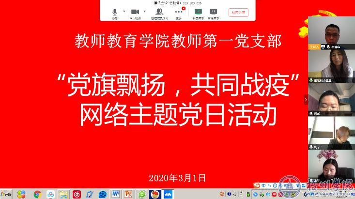 3月1日下午,按照学校党委组织部的要求,教师教育学院教师第一党支部在新冠肺炎疫情防控期间开展了“党旗飘扬,共同战疫”网络主题党日活动,党员们通过网络平台学习了疫情防控的有关知识,并就主题活动纷纷进行了讨论发言。