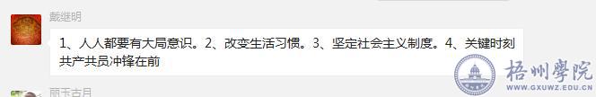 2月28日下午四点,宝艺学院教师党支部通过党员微信群召开“疫情防控,人人有责”网络党日活动,全体党员参加了活动。
