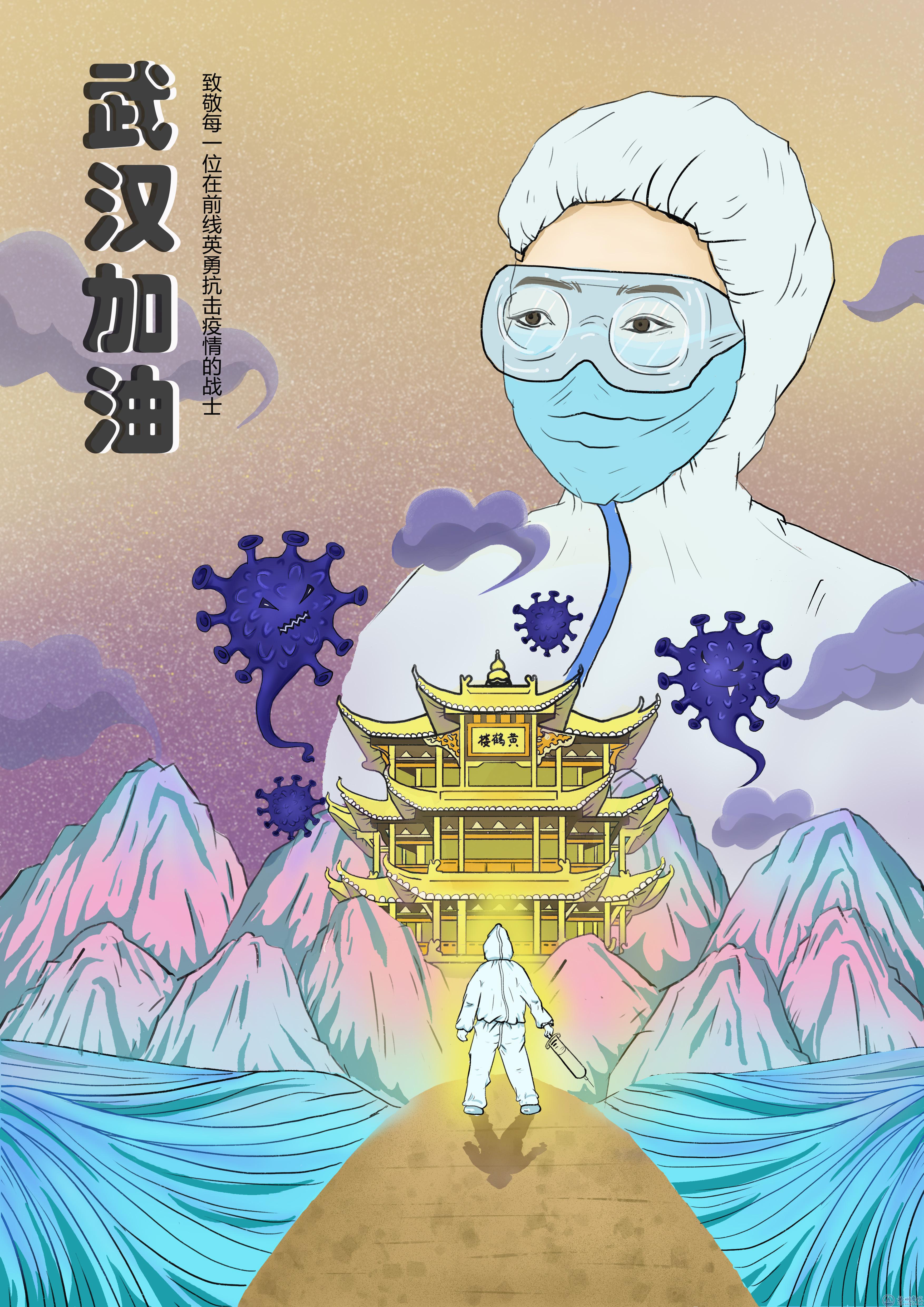 学生李雅琪公益海报作品《武汉加油》