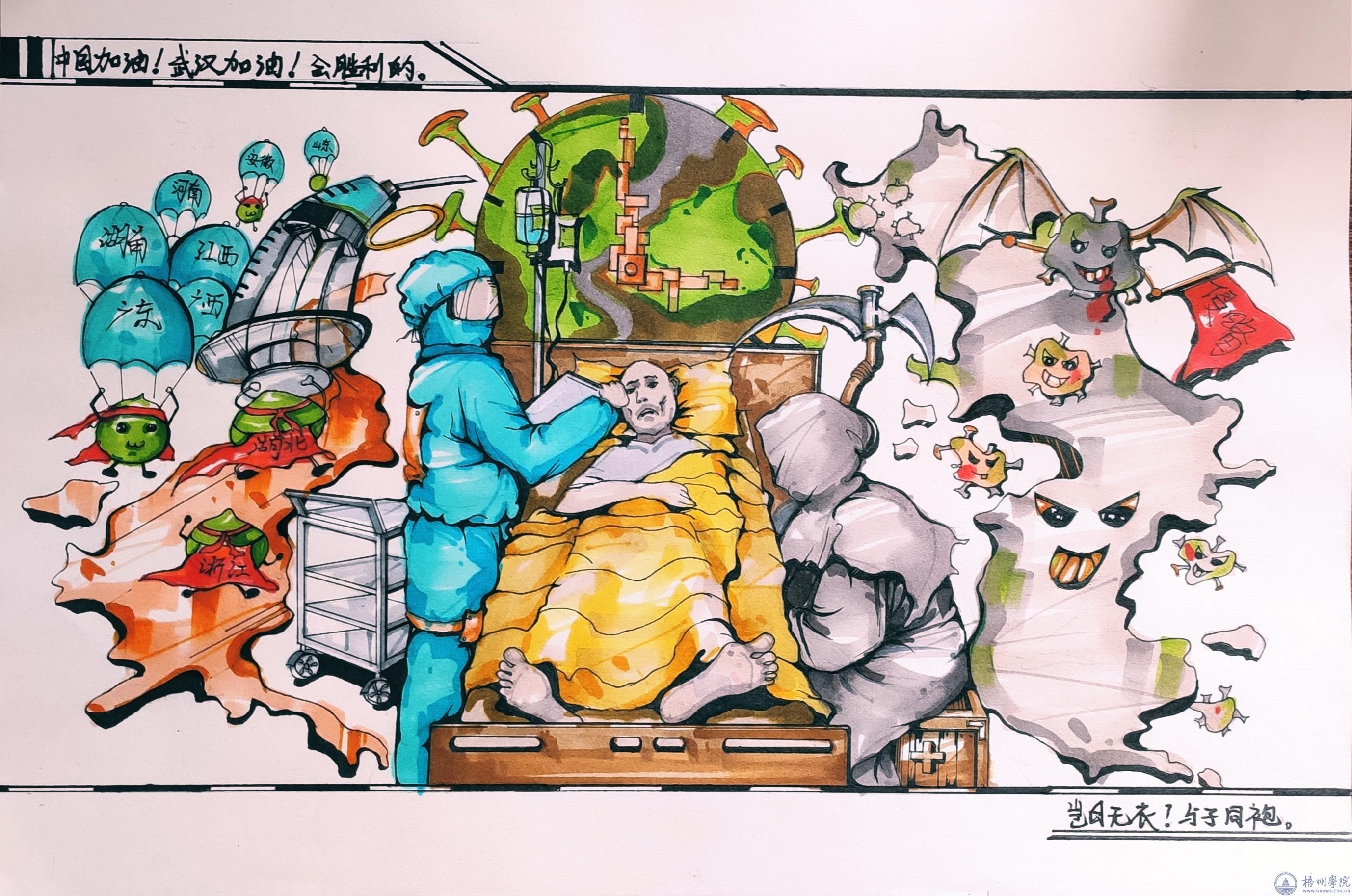 新型冠状病毒感染的肺炎疫情发生以来,为了讲好中国抗击疫情故事,普及防疫知识,发挥艺术服务作用。宝石与艺术设计学院师生充分发挥自身的专业优势,创作了国画《生命之花》、海报《警惕!鞋携邪》、视频《天使加油》、漫画等多种艺术门类作品共 30多件。