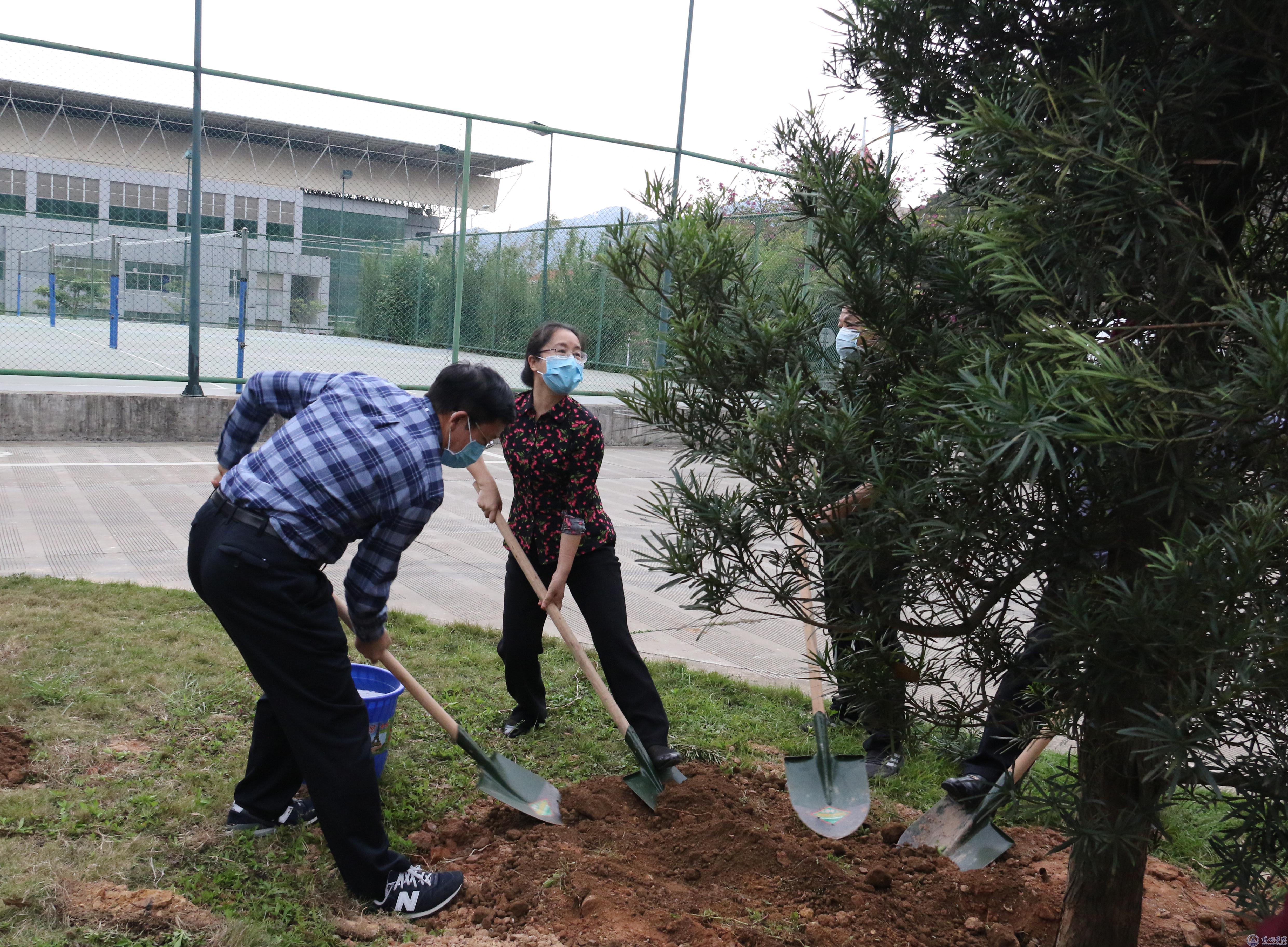 在风雨球场旁绿化带内,钟畅姿还与学校领导、教职工代表一起共同植树,栽下树形优美挺拔的罗汉松,希望我校进一步做好校园绿化工作,打造美丽校园。
