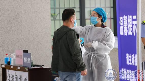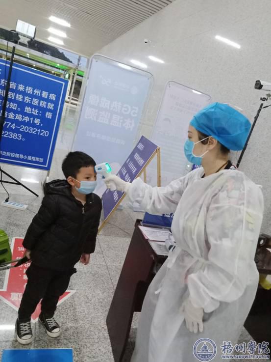 钟安琪老师在梧州南站疫情体温检测站为乘客检测体温