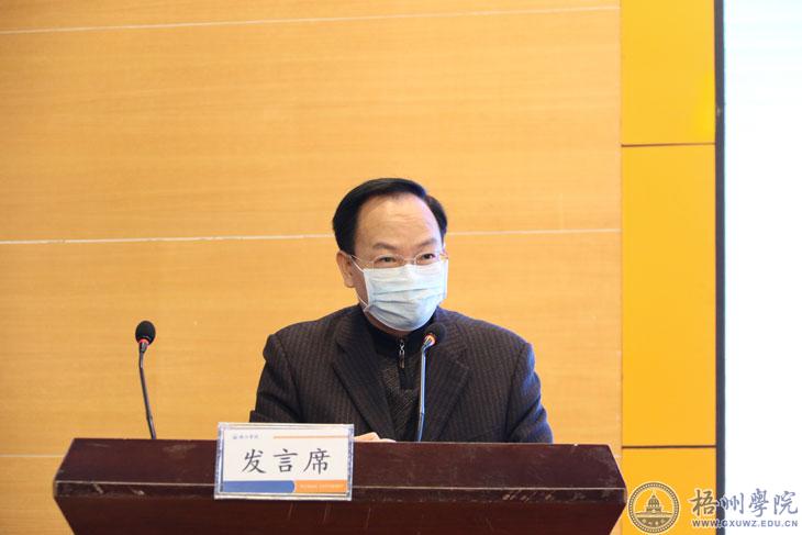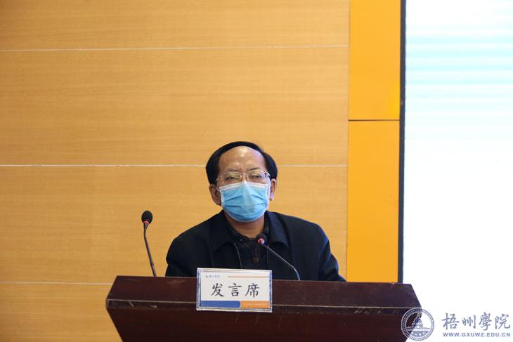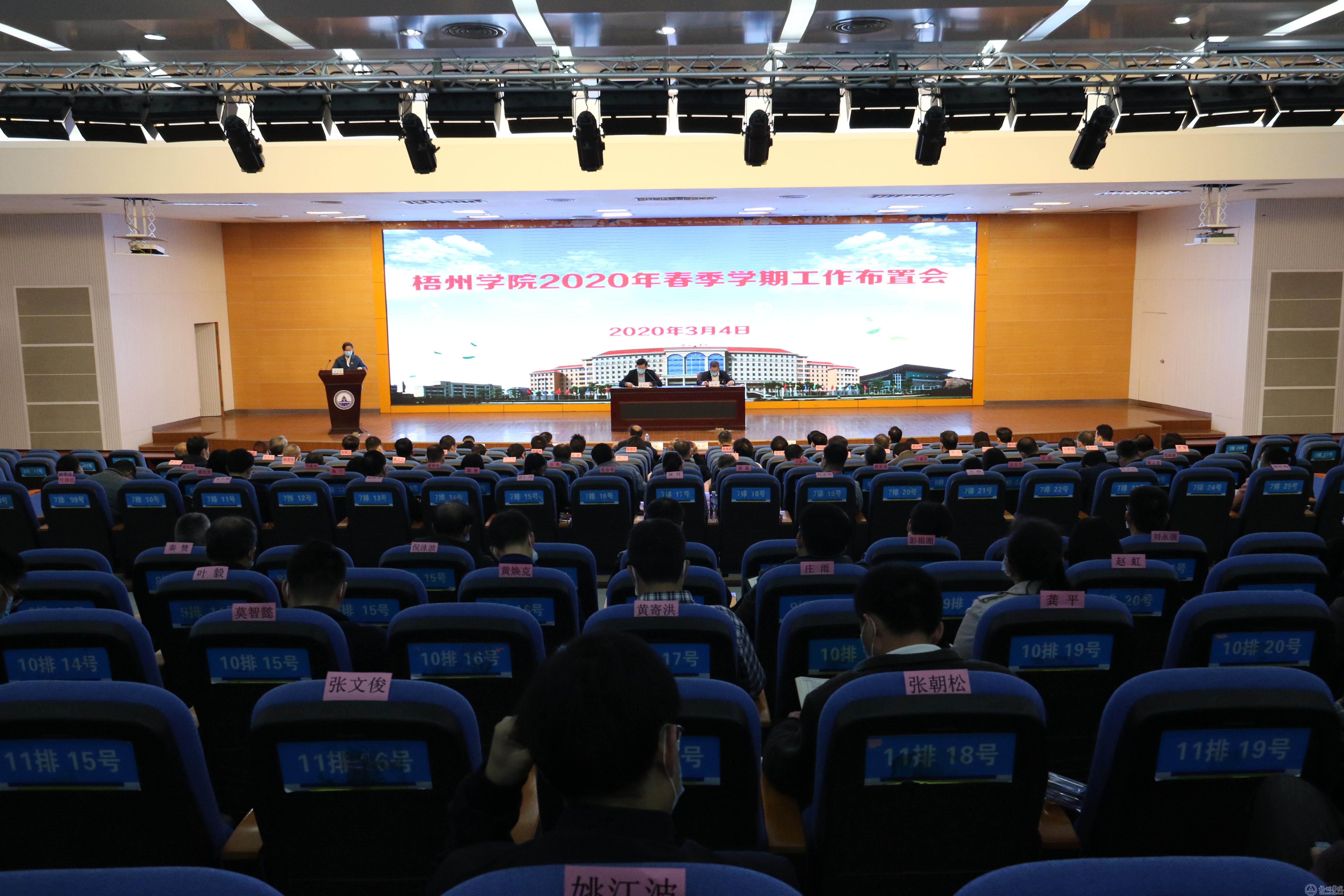杨奔校长指出,2019年,全校上下齐心协力、解放思想、实干担当、奋发有为,各方面工作有成绩、有亮点。他认为2020年,特别是春季学期要重点抓好的10项工作是:坚持严防严控,全力做好疫情防控工作;强化政治引领,狠抓党建,增强履职尽责能力;深化本科教学改革,提升人才培养质量;持续深化综合改革,激发办学活力;加强人才队伍建设,优化人才队伍结构;加强学科建设,推进硕士专业学位授权单位和授权点建设;加强科研工作,提升服务地方水平;推进依法治校,完善学校内部治理体系;改善办学条件,打好基础设施攻坚战;坚持开放办学,推进梧州大学筹建。他号召,在疫情防控的特殊时期,我们要保持定力、奋发有为,实现学校疫情防控和事业发展“两不误”“双胜利”。