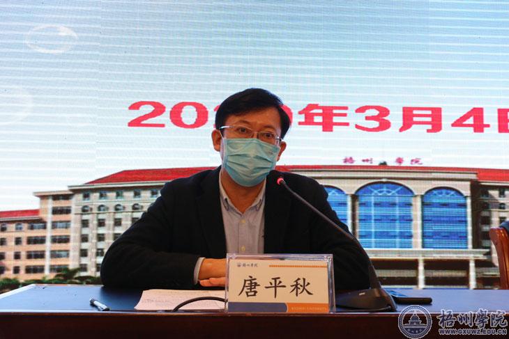唐平秋书记在总结讲话中提到2019年的工作紧张、充实、令人欣慰,他认为,学校各位领导的工作布置思路清晰、目标明确、要求具体,有指导性和针对性,各单位各部门要认真领会,抓好贯彻落实。就如何做好新学期工作,他提出五点意见:认清工作形势,坚决贯彻党中央关于疫情防控各项决策部署,打赢疫情防控阻击战;紧盯工作目标,学校升格大学的目标、学校第三次党代会提出的目标、学校党委三届三次全会提出的目标,已明确目标导向,需进一步加强工作盘点;善抓工作重点,以党的建设为统领,重点抓疫情防控、教学质量提升、基建、人才等工作;狠抓工作落实,任务和责任要细化、量化、具体化,以钉钉子的精神推动、落实工作;强化工作责任,各级领导要强化工作督促、检查和指导,相关部门要落实激励机制、问责机制,确保工作落到实处。