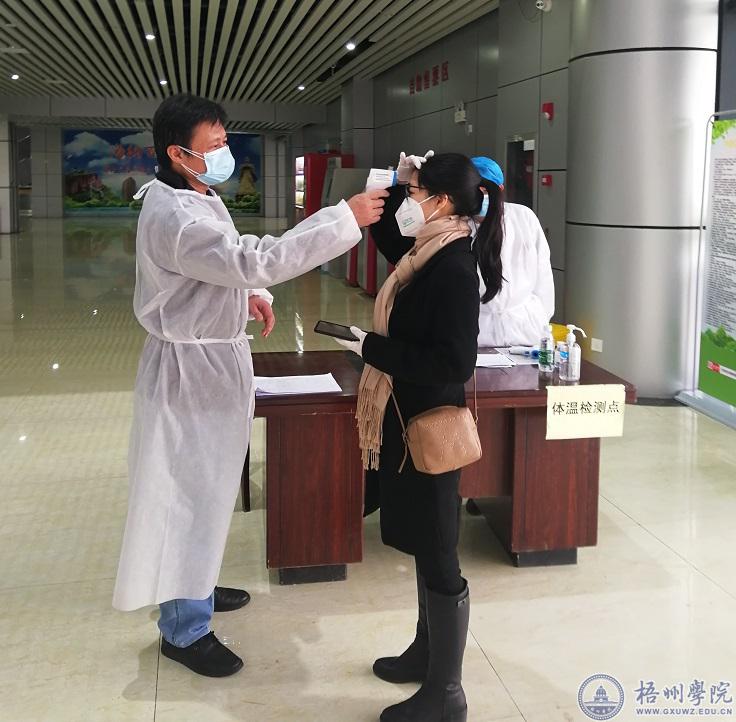 “您好,请您配合测一下体温,谢谢!”“您的体温正常,请往这边走!”这是志愿服务队员重复最多的话。机械与化工学院党委先后派出5名党员干部到梧州南站参与疫情体温检测志愿服务。