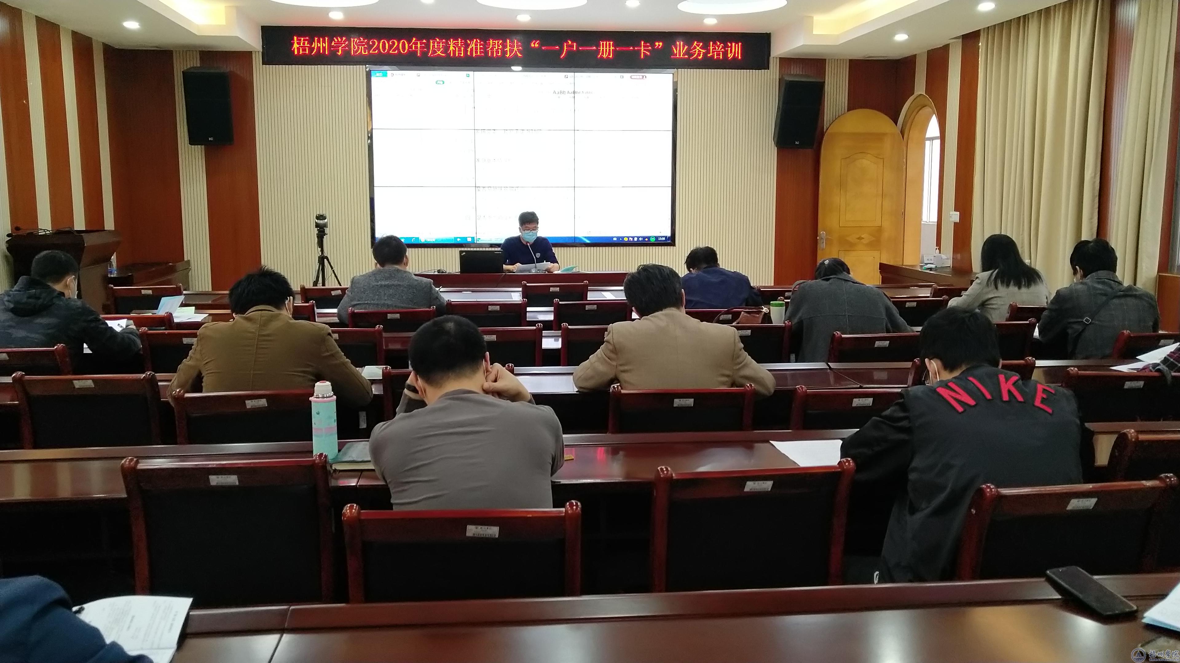为落实全区2020年度“一帮一联”工作电视电话会议有关工作部署,3月13日下午,我校在明理楼七楼视频会议室召开2020年度精准帮扶“一户一册一卡”业务培训会议,我校组织部部门负责人、各帮扶牵头单位帮扶干部代表20多人参加了会议。