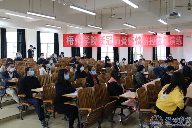 4月7日下午,我校举行新冠肺炎疫情防控应急演练。梧州市委常委、市政府常务副市长吴浩岭,市委常委、副市长马辉,市委副秘书长黄春全,市新冠肺炎防控指挥部开学工作组副组长、教育局副局长唐棣和朱宇乾,市卫生健康委员会党组成员江带灵到演练现场观摩指导。学校演练总指挥、学校党委书记唐平秋,演练总指挥、校长杨奔,学校领导曹迎、玉振明、邱房贵、梁业华、麻新纯、宾月景在现场指导应急演练。学校新型冠状病毒感染的肺炎疫情防控工作领导小组指挥部下设开学工作组所有成员,党员志愿者服务队员272人、校卫队员12人参加演练。