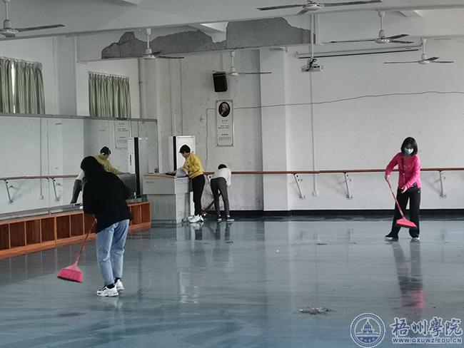 教职工在清洁舞蹈室