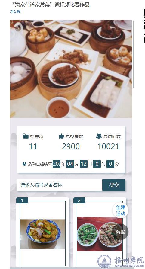 为丰富学生居家学习的生活,记录“家”的温情,商学院于3月6日至4月16日举行了“我家有道拿手菜”微视频评选活动,比赛共收到了30几名学生的“拿手菜”作品,经过初选有十几个同学的微视频作品进入决赛和展示环节,经过老师评委和学生评委的评分以及线上投票,最终2019级财本2班黄炳鸿的作品《葱香鸡肉》获得一等奖,2019级财本2班刘雨丽的作品《香菜鳊鱼》获得二等奖、2019级会计2班罗轻红的作品《椰子鸡》获得三等奖。
