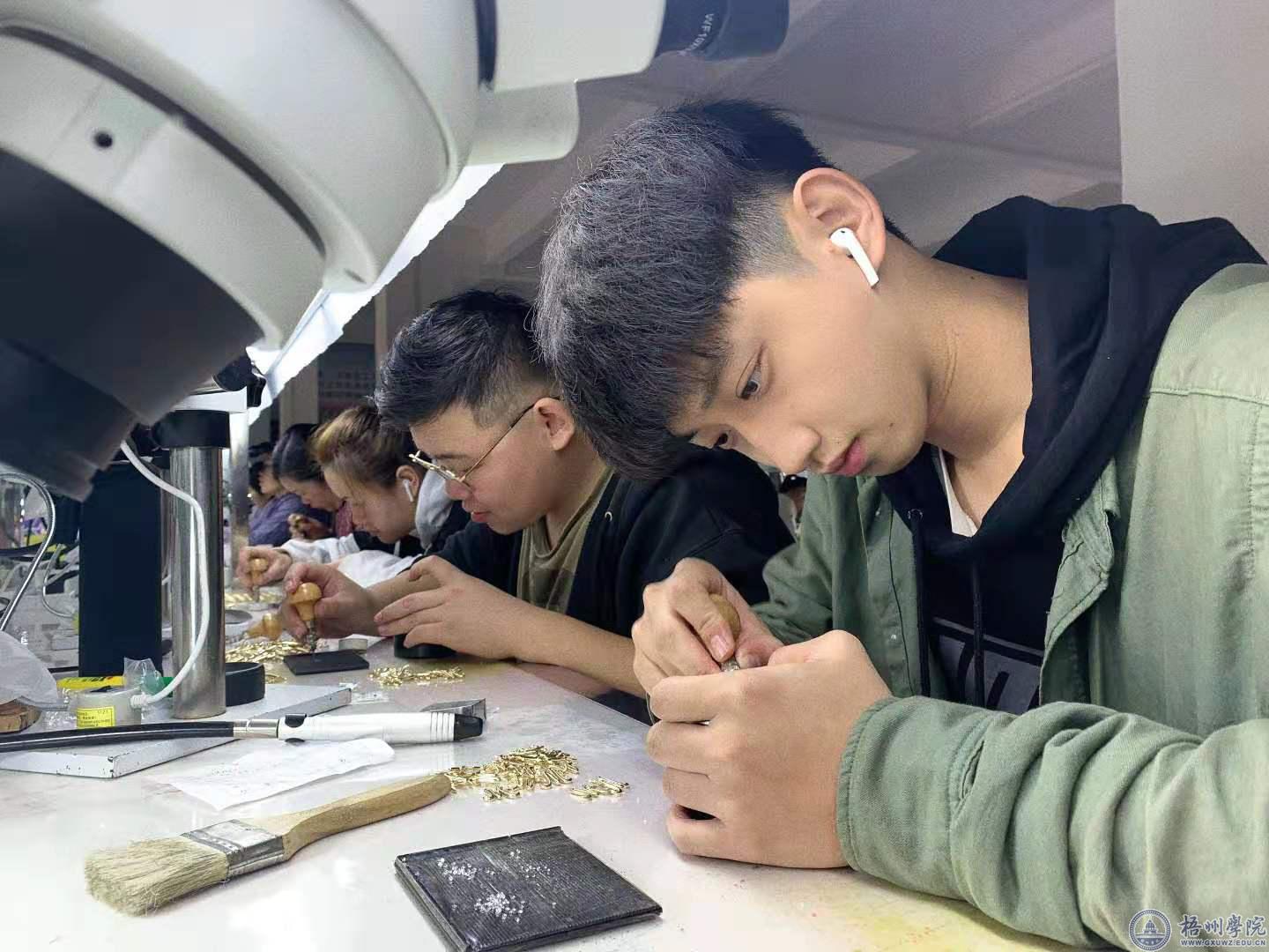 宝艺学院学生在进行首饰手工镶嵌工艺的实习