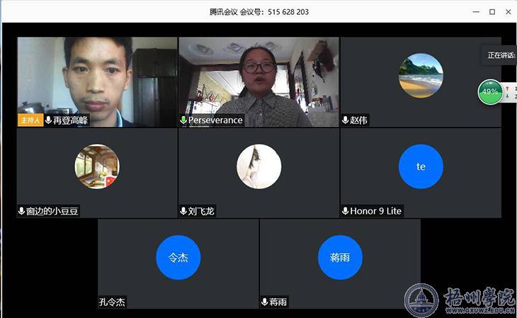 由于疫情影响,这几位同学都只能居家备考;了解到这一情况后,杨再峰博士便主动连同学院其他老师为同学们举办了这场别开生面的考研模拟复试。针对网络复试面试的特性,他们分别就几位同学所报考的专业提出了一些专业性和综合性问题,并指导同学们要整合知识,学会发散思维,回答问题时要注重逻辑性、概括性和创新性。