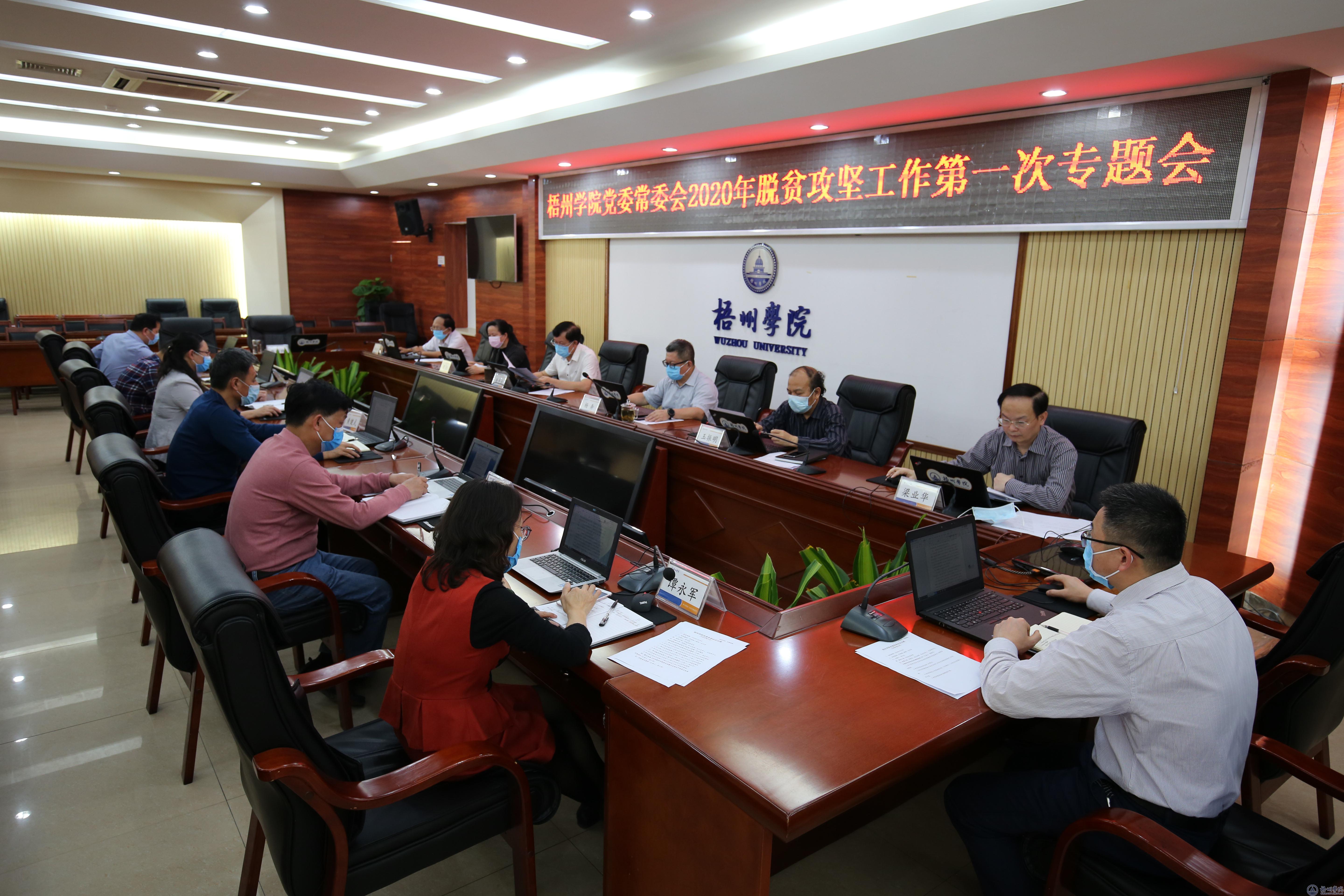 会议还审议通过《梧州学院2020年扶贫工作要点》《梧州学院领导班子成员2020年上半年走访帮扶贫困村工作安排》《梧州学院关心关爱脱贫攻坚(乡村振兴)工作队员及家属方案》及《梧州学院2020年消费扶贫工作方案》。