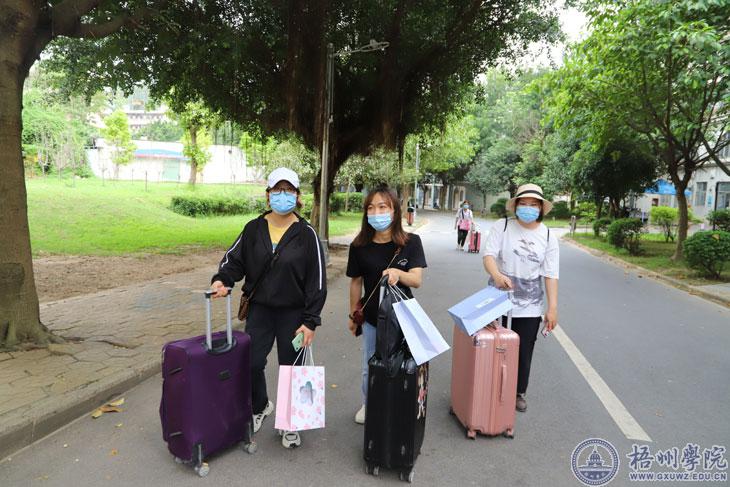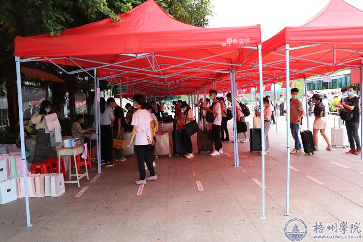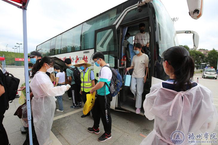 为了本批次返校学生顺利返校,学校安排了学工系统全体人员、50多名师生志愿者参与接待工作,安排13台大巴车、1台中巴车和1台面包车在梧州西江机场、梧州南站、梧州火车站、金晖汽车站接回返校学生。