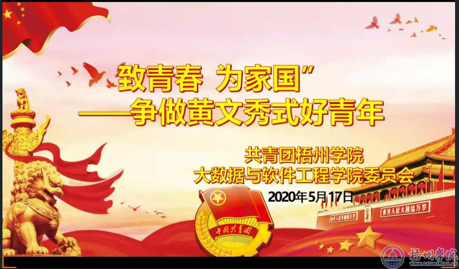 为深入学习领会习近平总书记对新时代青年的寄语精神,大数据与软件工程学院团委于5月17日晚在线上开展“致青春,为家国—争做黄文秀式好青年”主题学习会。