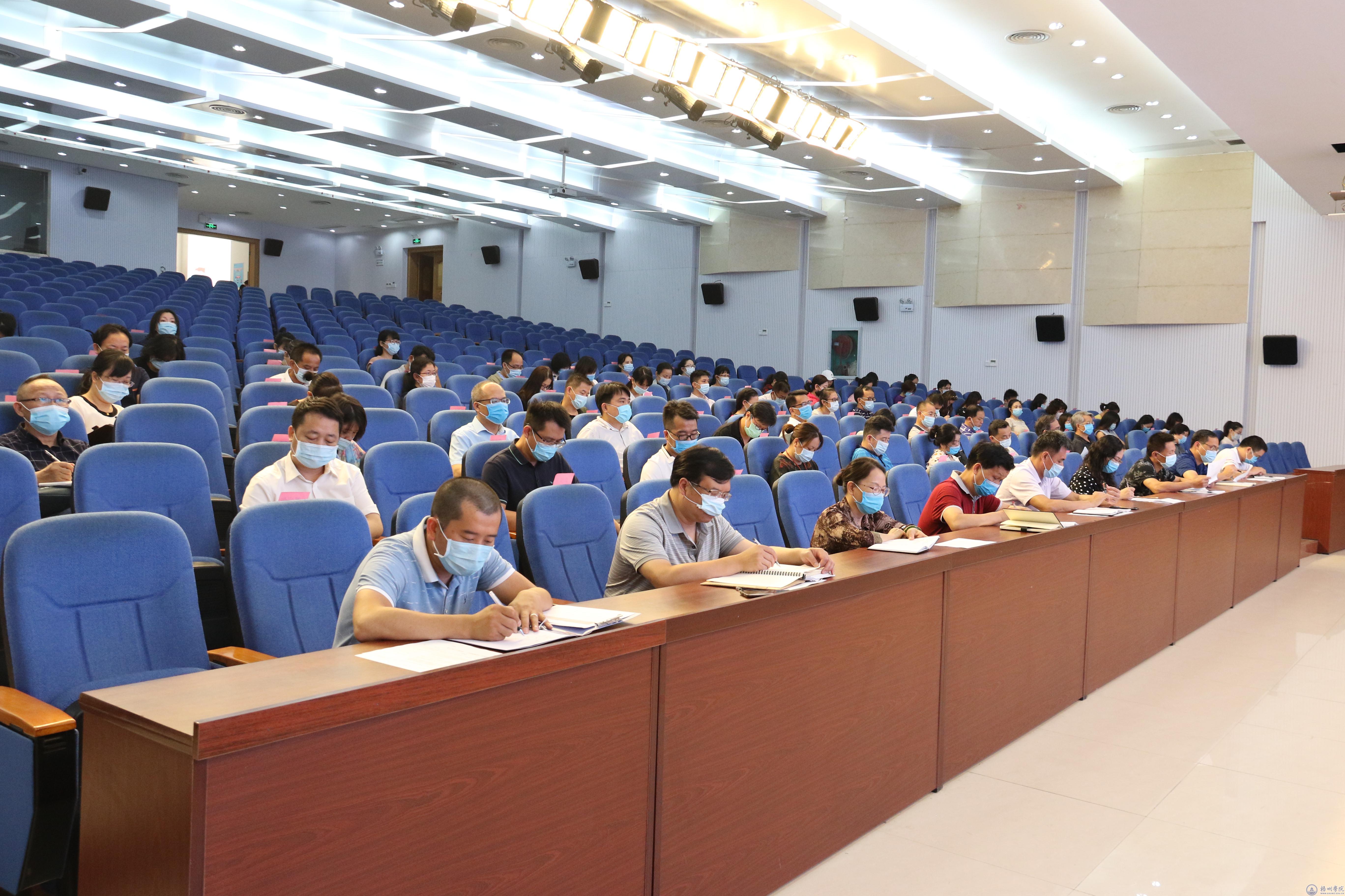 为全面贯彻落实党的十九大精神和习近平新时代中国特色社会主义思想,加强党对学校的全面领导、提升学校思想政治工作质量,努力推动我校的精神文明建设工作迈上新台阶,5月28日上午,学校在明理楼学术报告厅召开2020年思想政治工作会议暨精神文明建设工作推进会。学校领导唐平秋、杨奔、曹迎,各职能部门、教辅单位、群团组织等部门主要负责人,各二级学院党委(党总支)书记、副书记,党委宣传部、学生工作部(处)、校团委全体人员,马克思主义学院科级以上干部、教研室主任,全体辅导员参加会议。会议由校长杨奔主持。