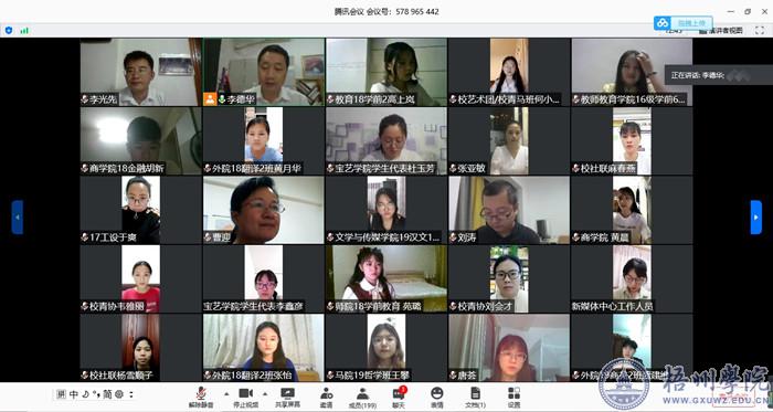 5月26日晚,校团委以视频会议的形式开展了“绽放战疫青春 书写奋斗人生”——线上主题团日活动。学校党委副书记曹迎与200多名学生代表座谈交流,听取同学们的心声,了解同学们学习、生活、心理等状况,解决同学们的实际问题,更好的为同学们服务。