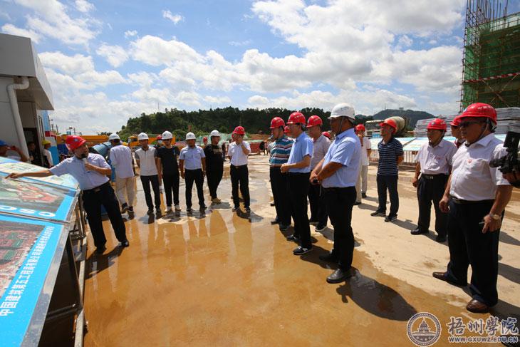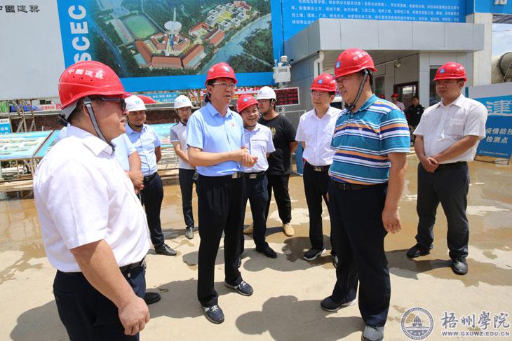 吴浩岭来到学校北校区项目工地,现场考察我校重点项目建设进展情况,听取了唐平秋、杨奔、玉振明关于学校近年来发展、2020届毕业生就业和北校区项目建设进展情况汇报。唐平秋表示,我校高度重视做好疫情防控背景下的毕业生就业工作,想方设法为毕业生提供更多的就业岗位,引导毕业生在梧州就业,为加快地方经济社会发展输送更多人才。杨奔表示,在自治区、梧州市领导及有关部门的大力支持下,北校区项目建设正在全面推进,但面临建设资金严重不足等突出问题。他希望市委、市政府在地方政府债劵申报、项目征地款政策性返还等方面给予我校更大力度的帮助和支持,确保项目一期工程今年8月如期建成,从根本上解决存在校外住宿点的问题。
