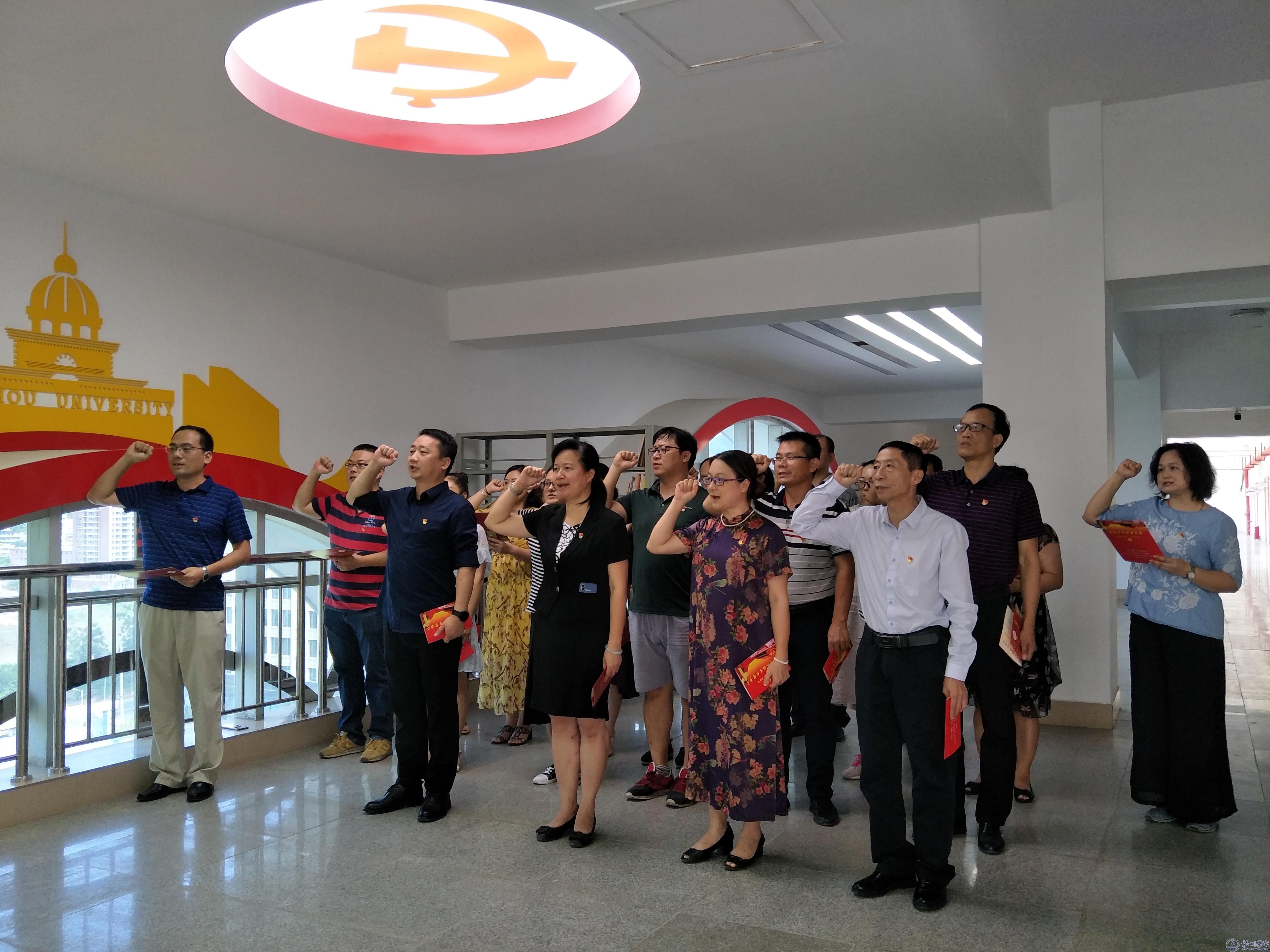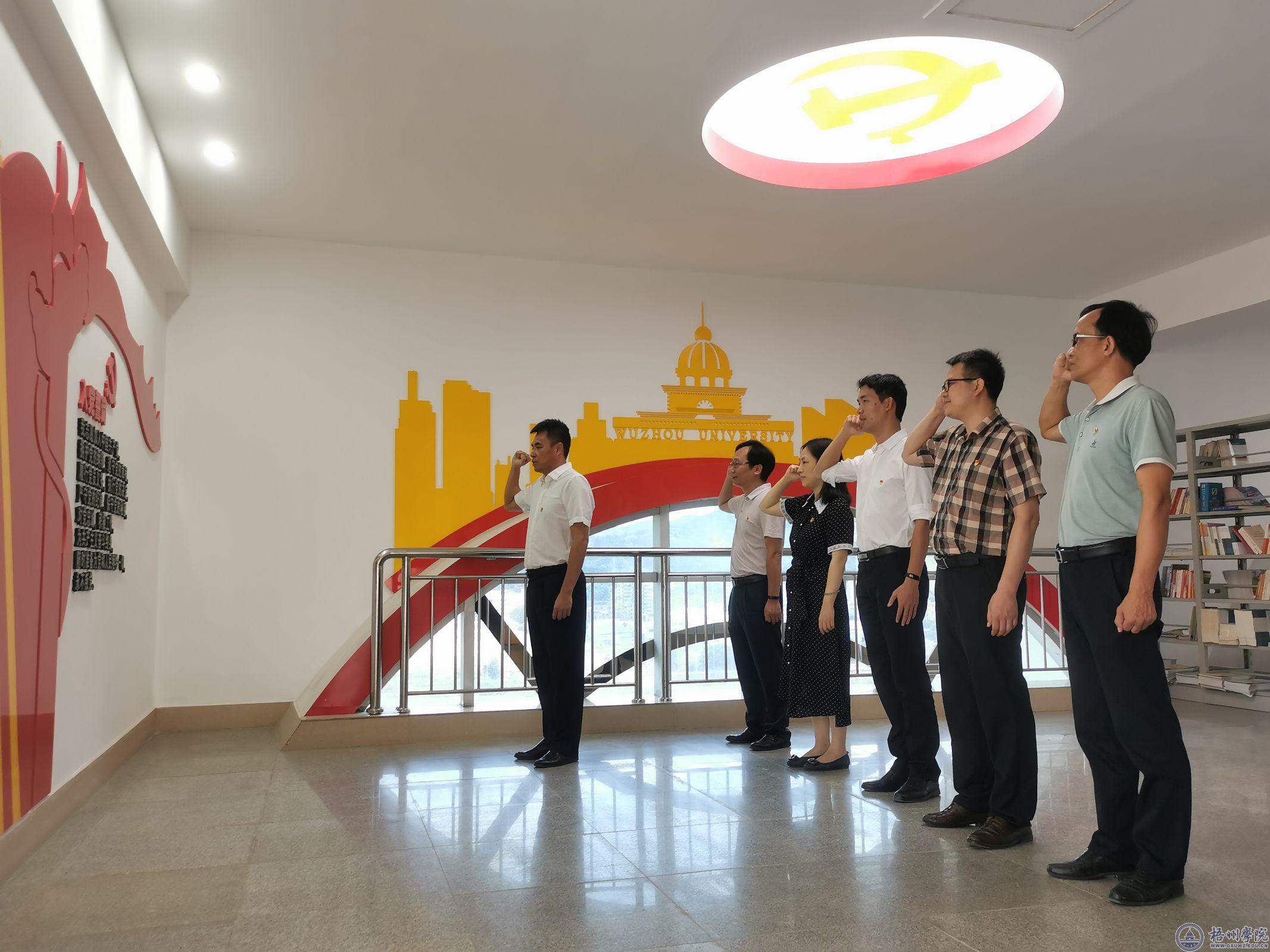 机关党委组织6个党支部开展主题党日活动,学校党委书记唐平秋、党委副书记曹迎带领党员干部,在学校明理楼九楼中楼党建活动阵地宣誓墙集体重温入党誓词及为上半年的同志过政治生日,进一步强化党员干部的党性意识和宗旨意识。