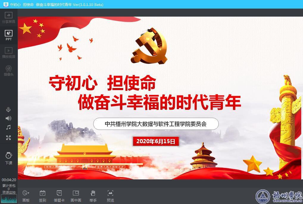 大数据与软件工程学院开展“守初心、担使命,做奋斗幸福的时代青年”毕业生专题党课,加强党员党性修养,希望广大毕业生党员严格要求自己,守住初心、担得使命,在充满奋斗的青春中感受奋斗的幸福,永葆党员的先进性。