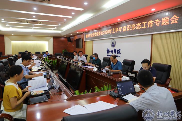 7月2日,学校党委在明理楼八楼第一会议室召开常委会,专题研究学校2020年上半年意识形态工作的有关问题。会议由学校党委书记唐平秋主持。杨奔、曹迎、玉振明、邱房贵、梁业华、麻新纯、宾月景、黄健武、陈健萍等学校党委常委、校领导出席会议。