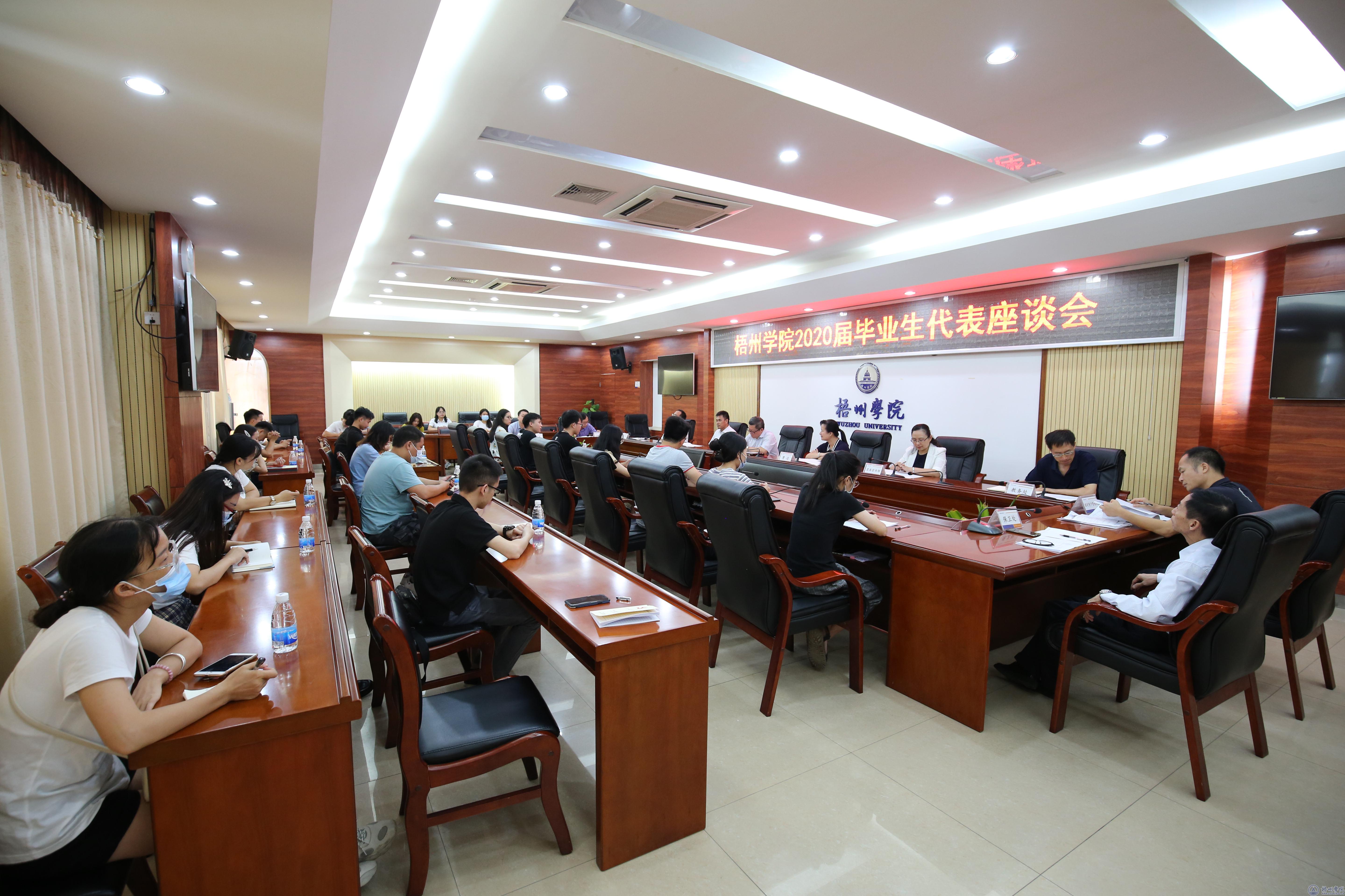“大家用热烈的掌声欢迎我们的毕业生回家!”一场离别许久的座谈会如约而至。7月10日下午,学校在明理楼八楼会议室举行2020届毕业生代表座谈会。校长杨奔、校党委副书记曹迎,组织部、宣传部、学生工作处、教务处、国有资产处、后勤基建处、保卫处、校团委负责人参加座谈会。