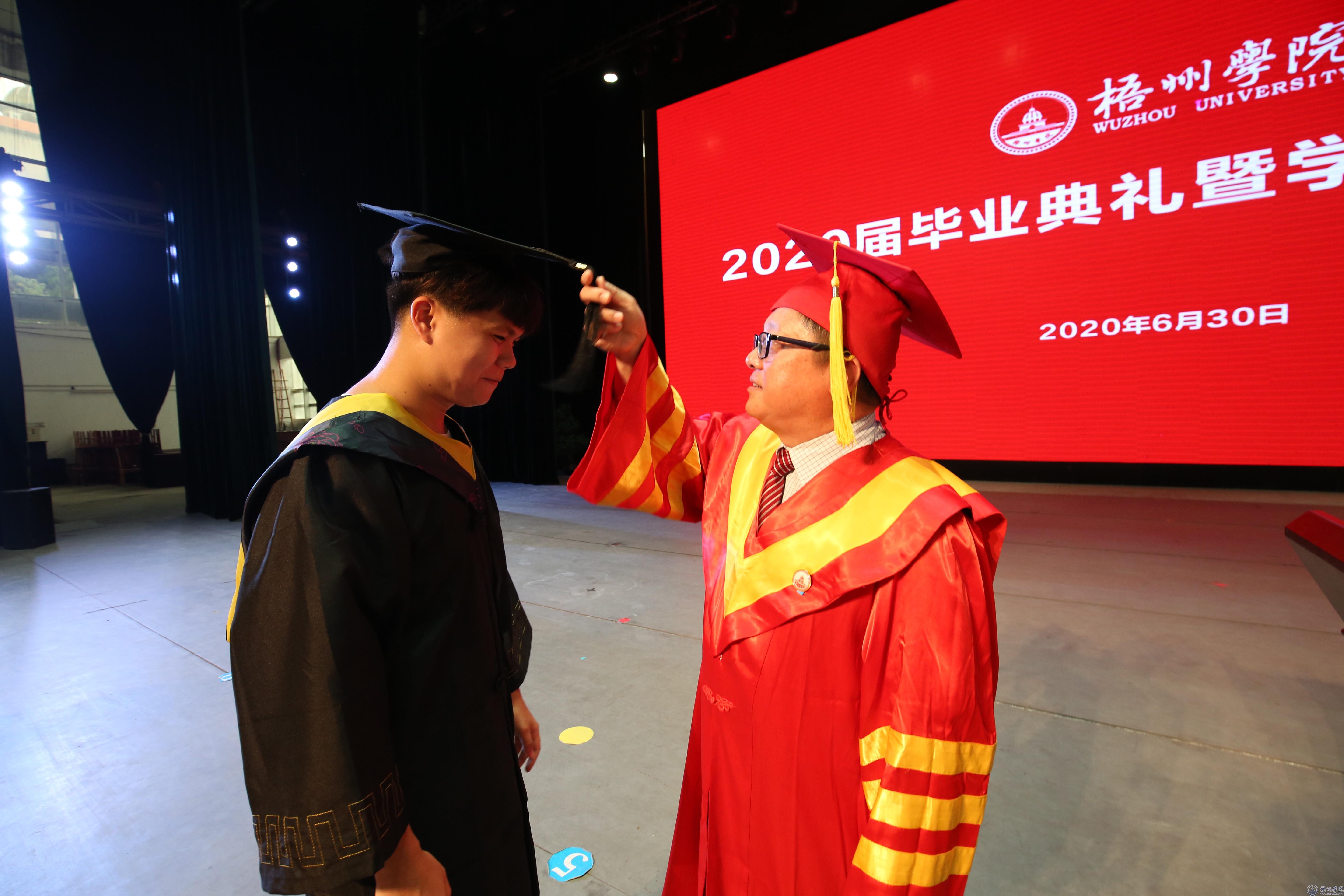 “这边过来一点,三、二、一,茄子……”杨奔校长带领同学们重回毕业典礼现场,并为在场的毕业生们扶正流苏。