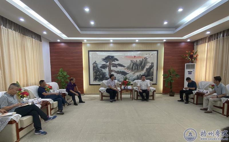 7月10日下午,学校党委书记唐平秋、副校长玉振明在明理楼八楼会客室会见了中建五局广西分公司副总经理冯科军、总会计师冯国昌和总工程师张胥一行,就北校区建设问题进行会谈。