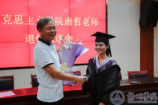 7月11日下午,马克思主义学院在明理楼7楼视频会议室为退休教师唐哲举行欢送会,学院领导班子成员、教师代表及毕业生代表参加。教师党支部书记李健敏主持欢送会。