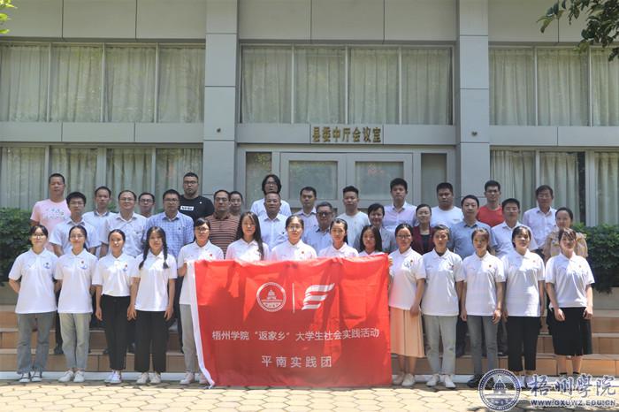 仪式上,杨奔、梁军共同为我校平南籍“返家乡”大学生社会实践团进行授旗;会后还召开了安全教育培训会。