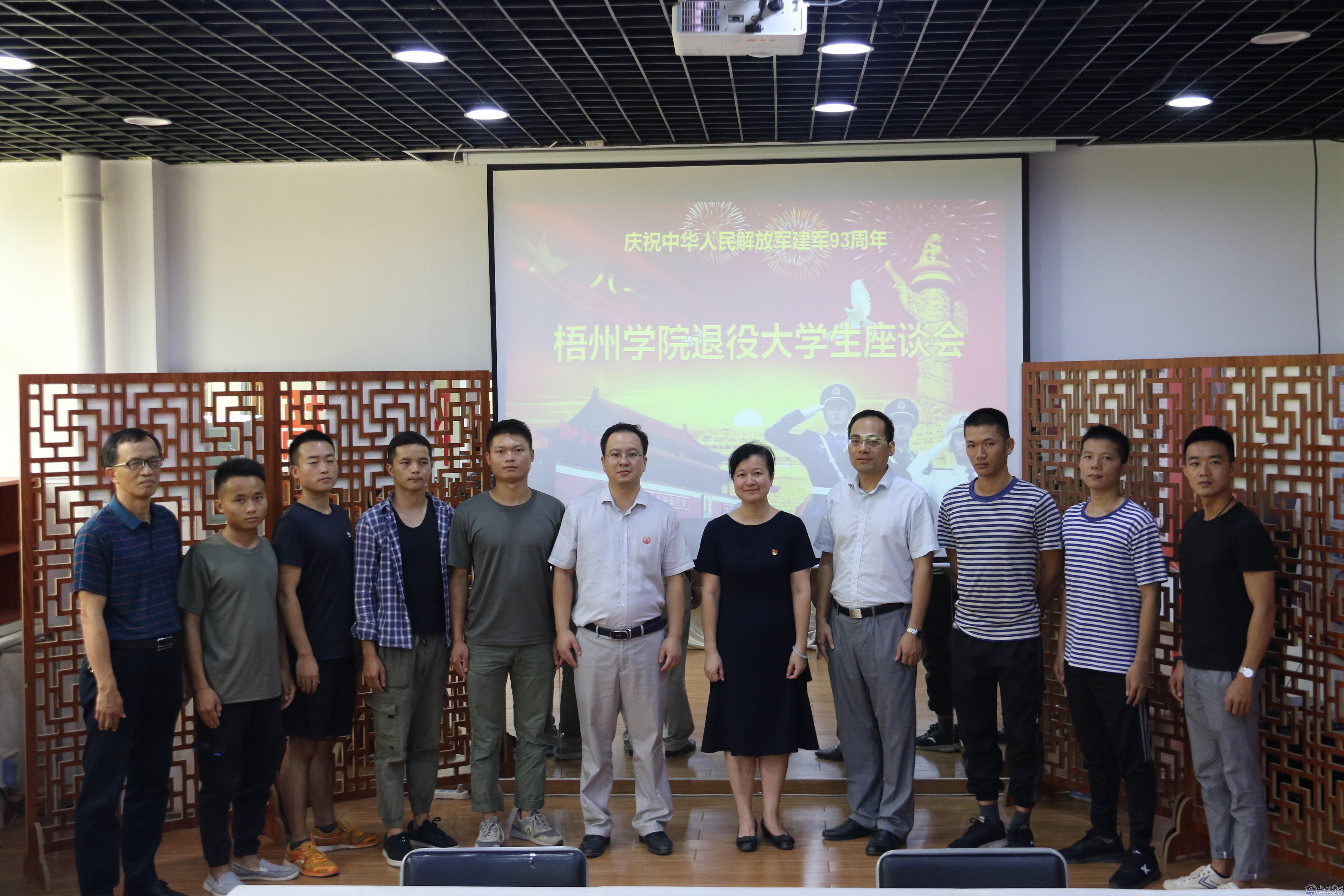 为纪念中国人民解放军建军93周年,进一步在我校营造浓厚拥军优属氛围,8月4日下午,学校党委副书记曹迎率队慰问在梧州的退役大学生代表和学校在职及退休的退役军人代表,为他们送去学校党委和行政的关心和温暖,并致以节日的问候。学校办公室、武装部、人事处相关人员参加活动。