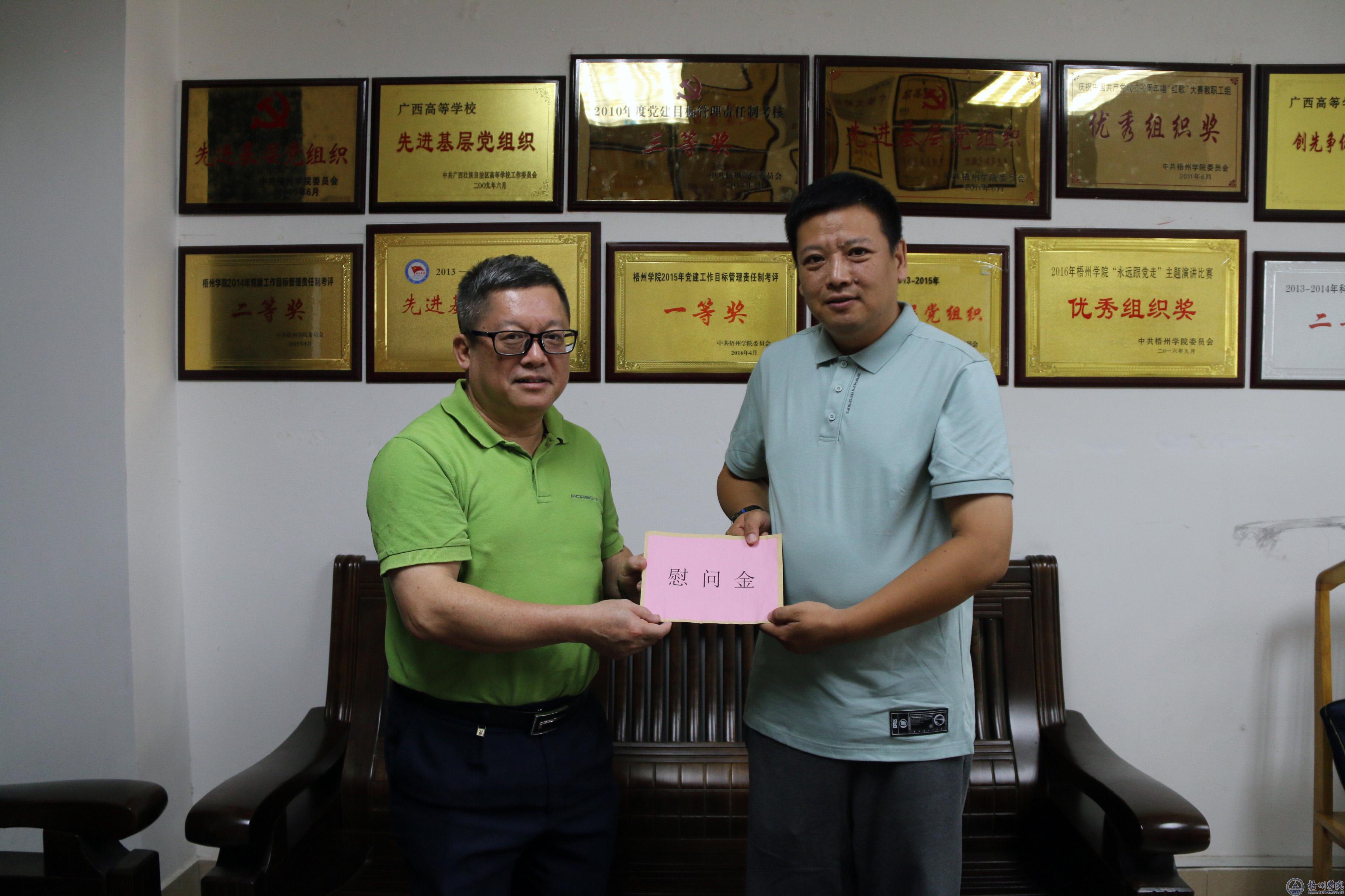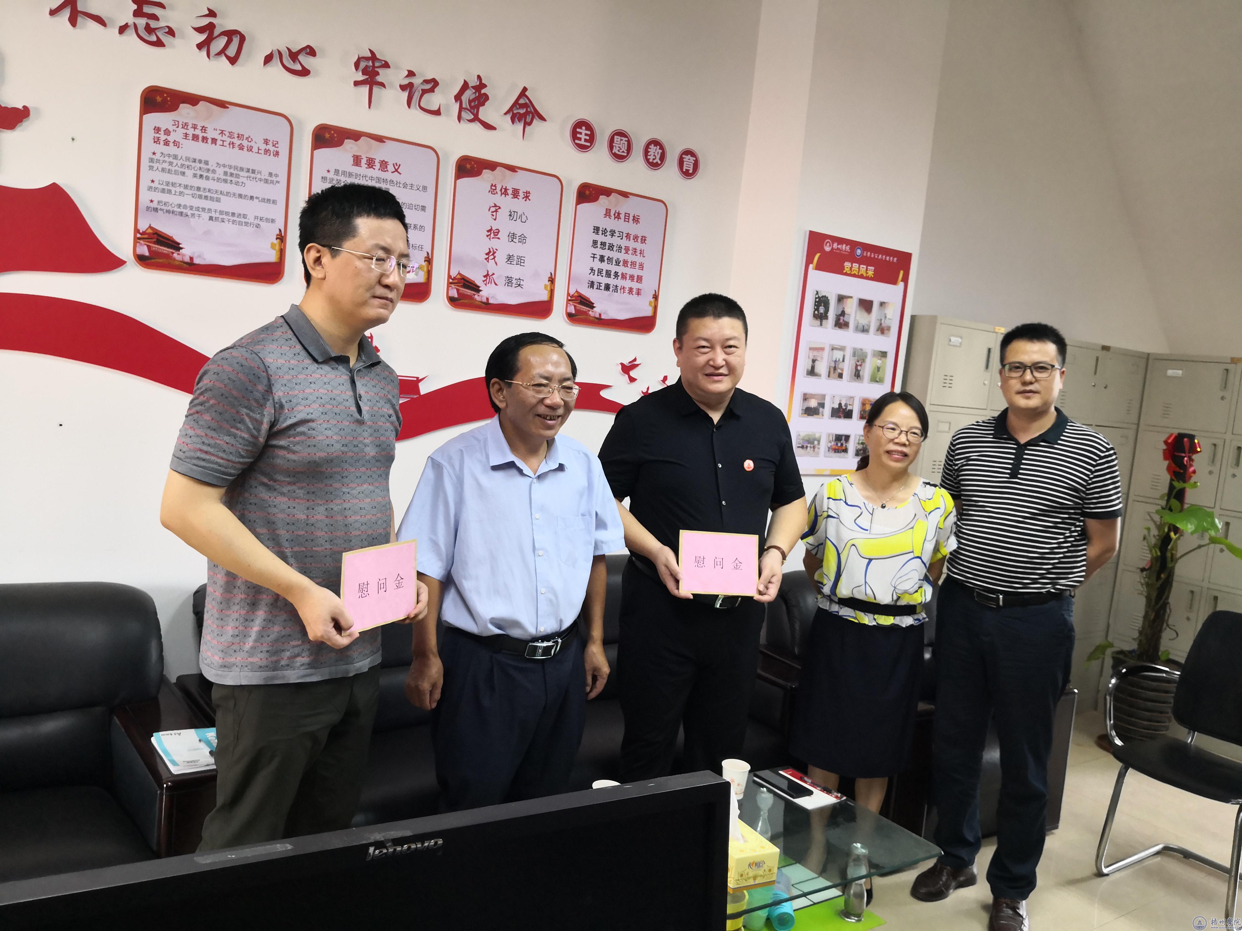 杨奔校长(左一)慰问仇景万博士(右一)