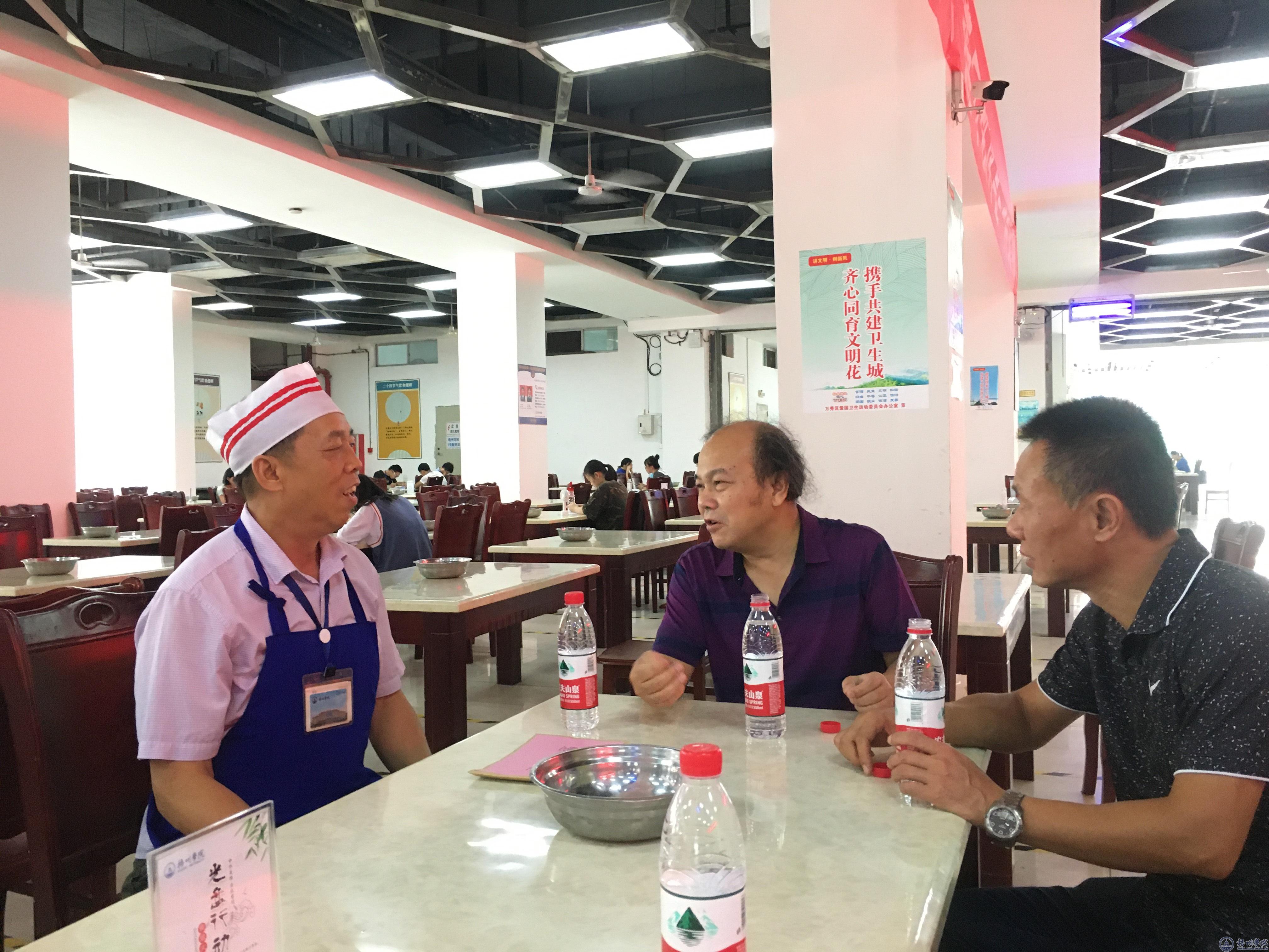 玉振明副校长(左二)慰问饮食服务中心人员陈火庆(左一)