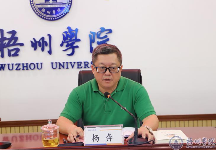 讲座后,杨奔、梁业华、黄健武、覃雄彪分别围绕学习主题作了交流发言。校长杨奔就学习《习近平谈治国理政》第三卷作中心发言。他表示,习近平总书记有关文化自信的阐述深刻揭示中国特色社会主义道路选择具有深厚的中华文化基础,深刻论述中国特色社会主义理论植根于中华文化沃土,深刻阐述了中国特色社会主义制度具有深厚的历史底蕴,精辟概括高度自觉的文化自信源自于中国文化的博大精深。