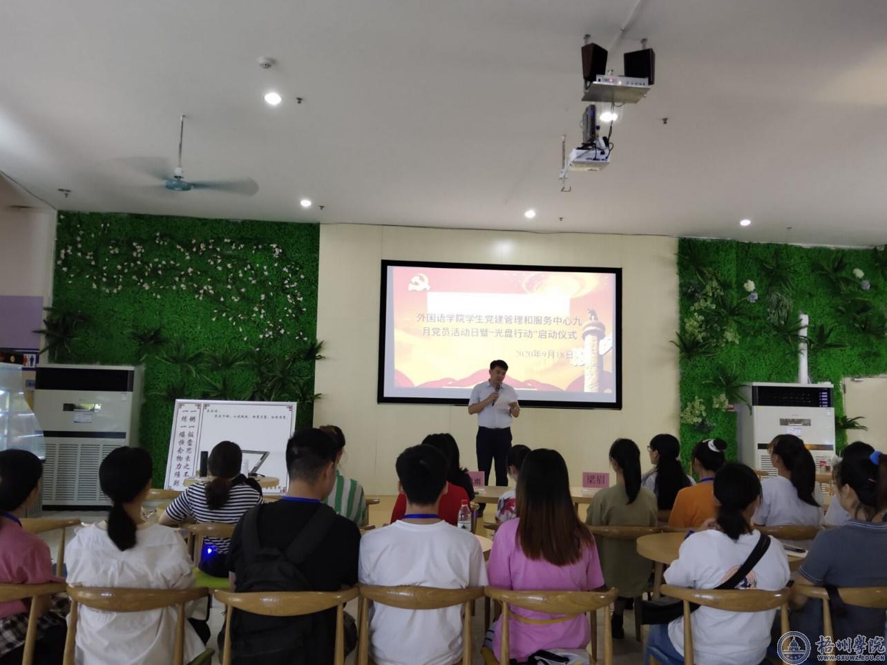 9月18日下午,外国语学院党建中心在二食堂顺利开展了九月党员活动日暨“光盘行动”启动仪式。参加活动的有学院领导和全体学生支部党员及党建中心成员。