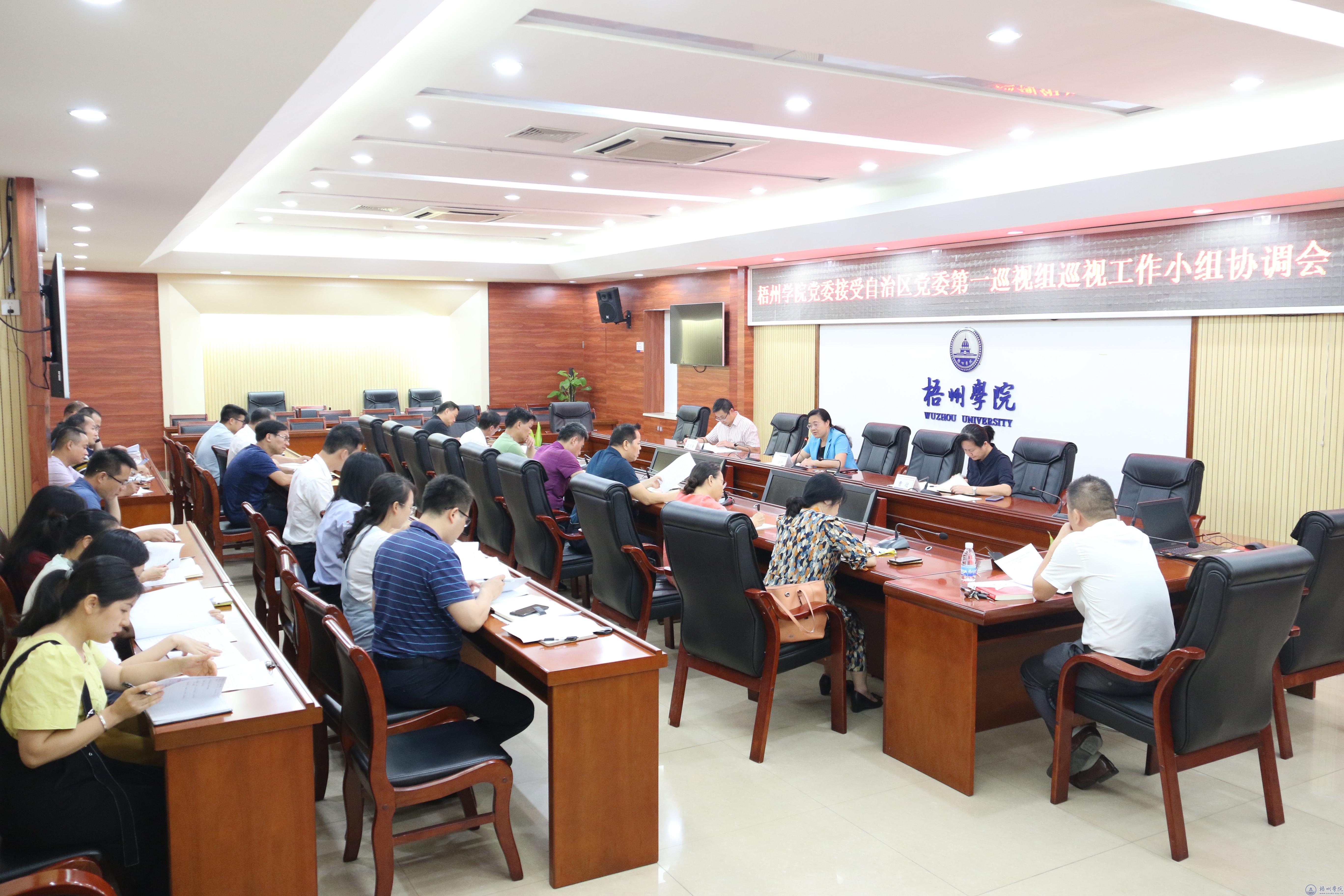 9月20日晚,学校党委接受自治区党委巡视组巡视工作小组协调会在明理楼第一会议室召开,学校领导韦仕珍、曹迎、宾月景出席会议,学校党委接受自治区党委巡视组巡视工作领导小组下设工作组全体成员参加会议。会议由校党委书记韦仕珍主持。