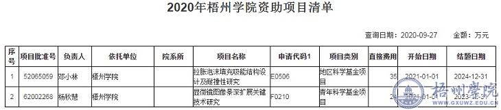在获批的国家级项目中,学校科研处邓小林教授申报的《拉胀泡沫填充吸能结构设计及耐撞性研究》和大数据与软件工程学院教师杨秋慧申报的《显微镜图像景深扩展关键技术研究》项目获国家自然科学基金项目立项。据悉,国家自然科学基金项目预算较2019年缩减7.1%,申报数量较2019年增加近12.5%,项目立项难度较往年有所增加。