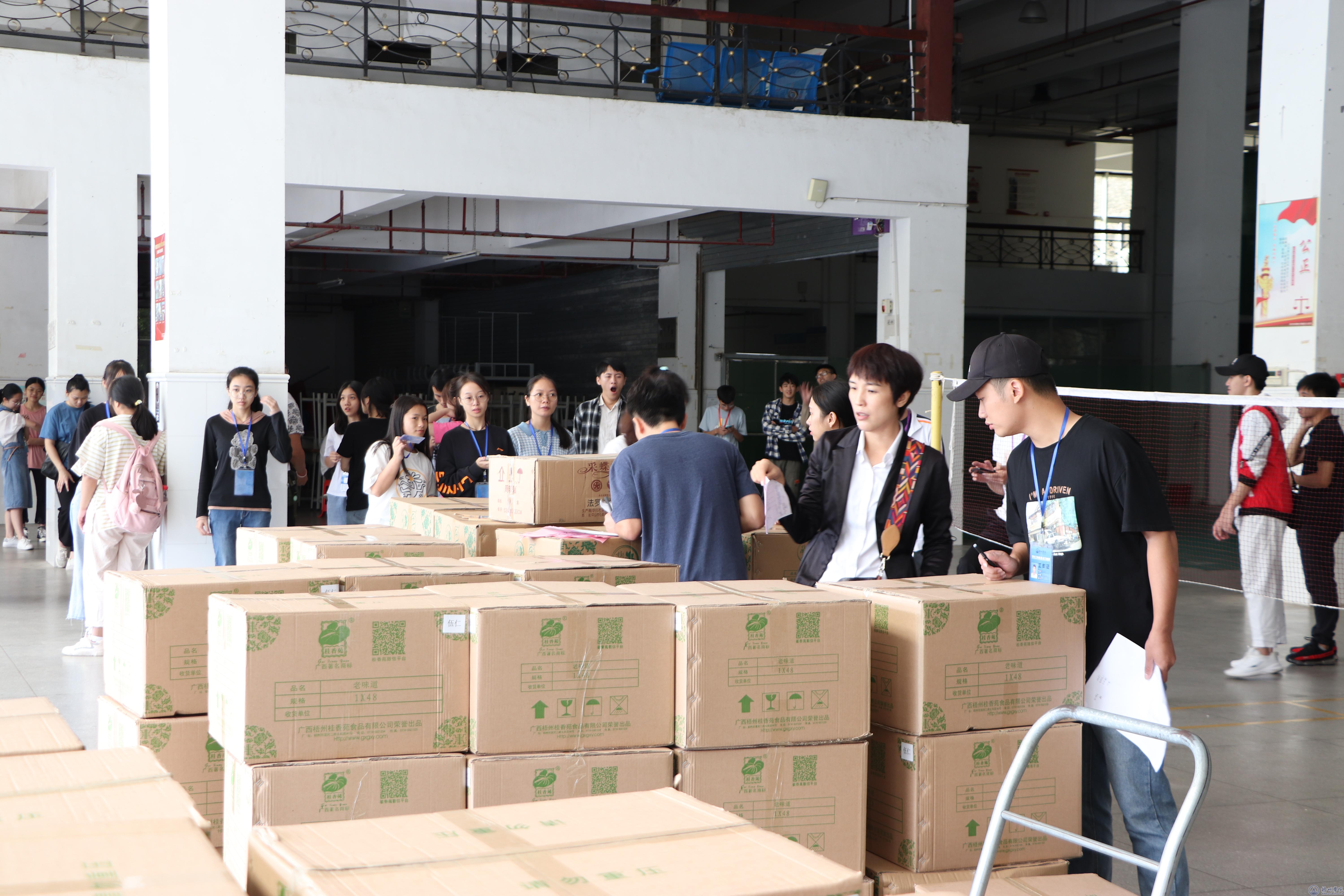 9月28日上午,学校在体育馆一楼为学生派发中秋节月饼。在现场,各二级学院学生代表根据清单有序地领取月饼,并将其置于各学院放置点,等待各班级负责人前来领取月饼。发放月饼现场工作安排有序,秩序井然,学生们脸上都露出幸福的笑容,现场洋溢着浓浓的中秋节日氛围。