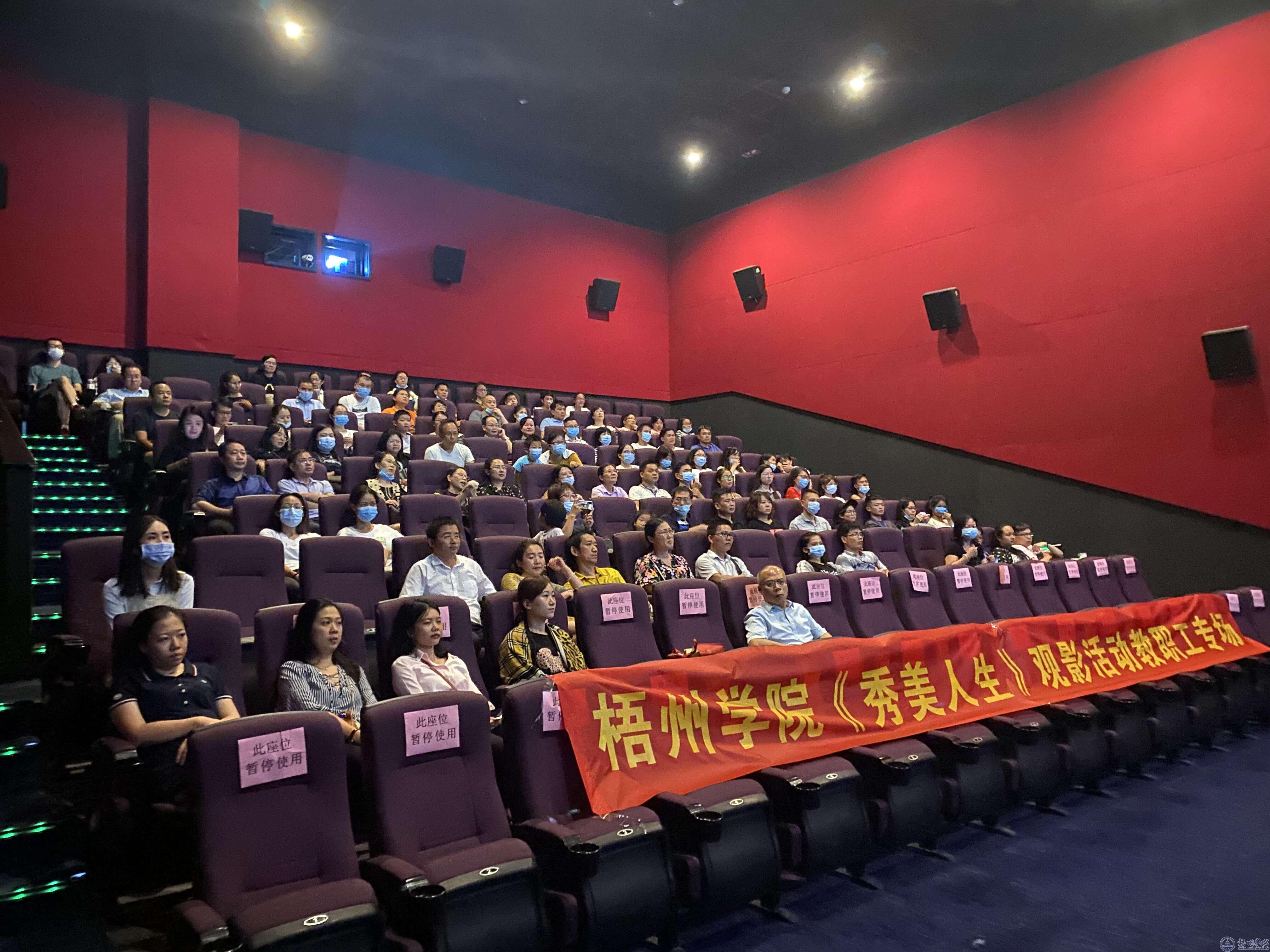为贯彻落实习近平总书记对黄文秀同志先进事迹作出的重要指示精神、响应自治区党委关于开展向黄文秀同志学习活动的号召,9月29日晚,学校组织100余名教职工代表赴横店影城集体观看由自治区党委宣传部、广西电影集团等单位联合摄制的电影故事片《秀美人生》。学校党委副书记曹迎、纪委书记梁业华、副校长宾月景带队观影。