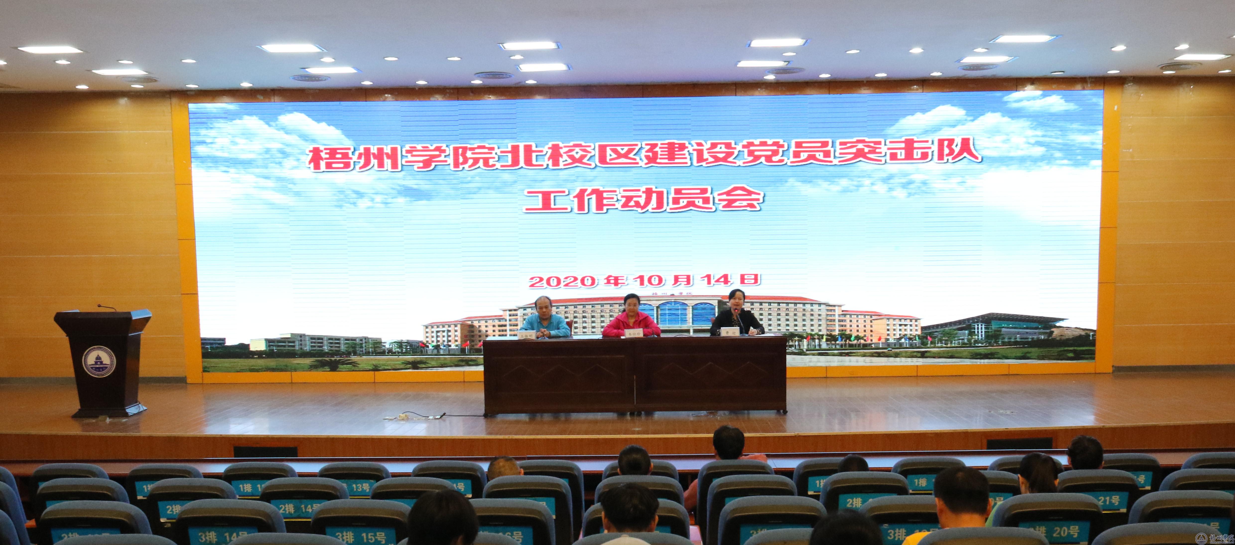校党委书记韦仕珍作深情动员。她表示,学校的建设牵动着每个教职工的心,“梧院速度”让每个教职工心潮澎湃、倍感自豪,在学校有需要的时候,我们勇挑重担,义无反顾,“我们爱梧州学院,我们就去呵护她,我们就去建设她吧!”动员讲话后,韦仕珍为党员突击队授旗,各二级党委、党总支、直属党支部书记上台领旗。