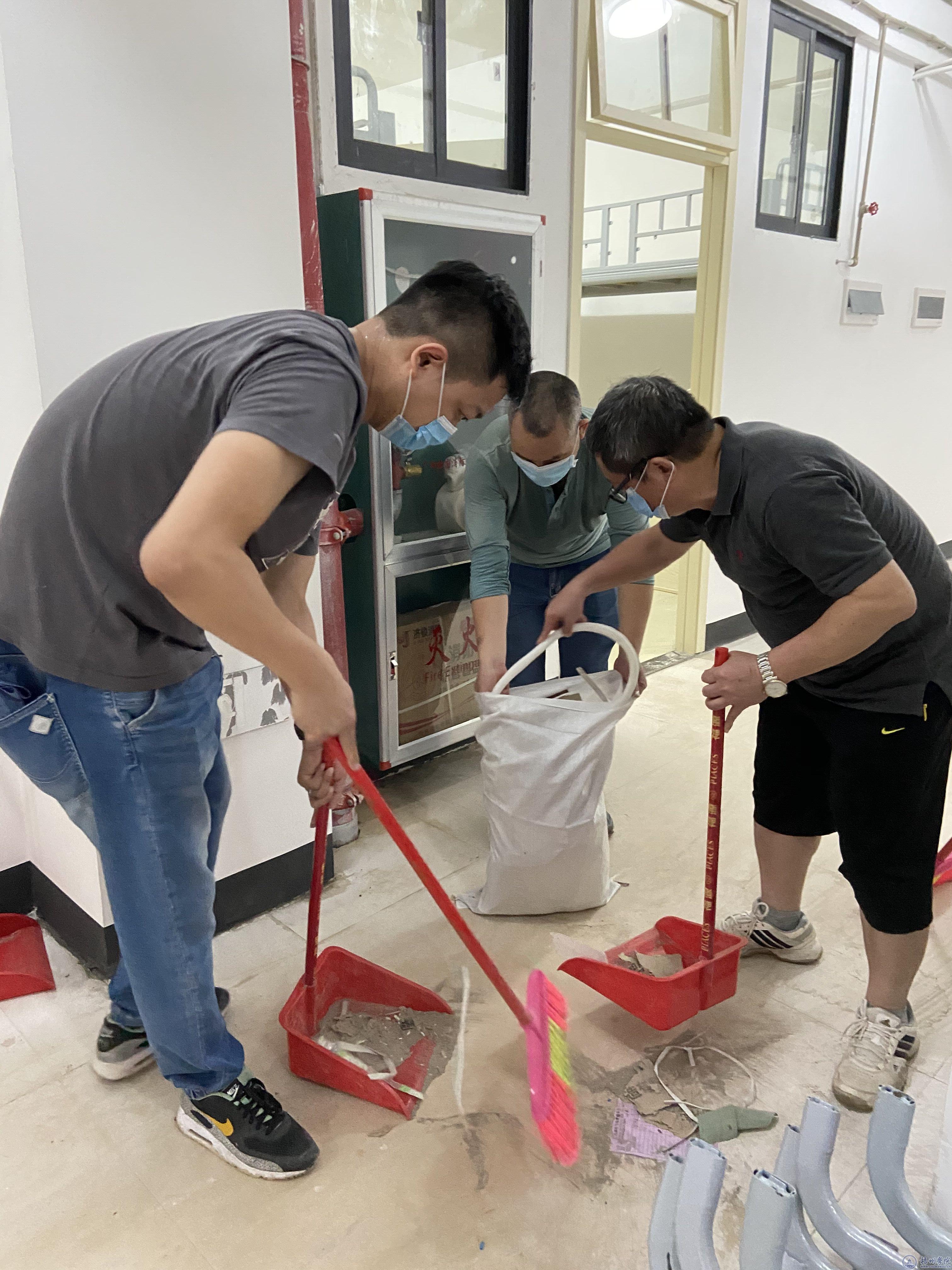 动员会上,副校长玉振明作工作布署,他从工作内容和要求、注意事项等方面为全体突击队员作了培训。动员会后,突击队立即奔赴“战场”,对1000多间宿舍进行卫生大扫除。队员们领取劳动工具, 根据安排到指定楼栋指定楼层,两人一小组,一小组负责3至4间宿舍。韦仕珍书记、杨奔校长和大家一起劳动,给大家加油鼓劲。宿舍楼灯火通明,楼楼相通,到处是突击队员忙碌劳动的身影。